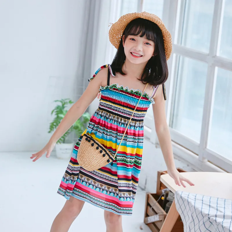 2021 летнее платье с цветочным принтом для девочек богемное пляжное платье принцессы на бретелях с оборками для девочек 1-8 лет