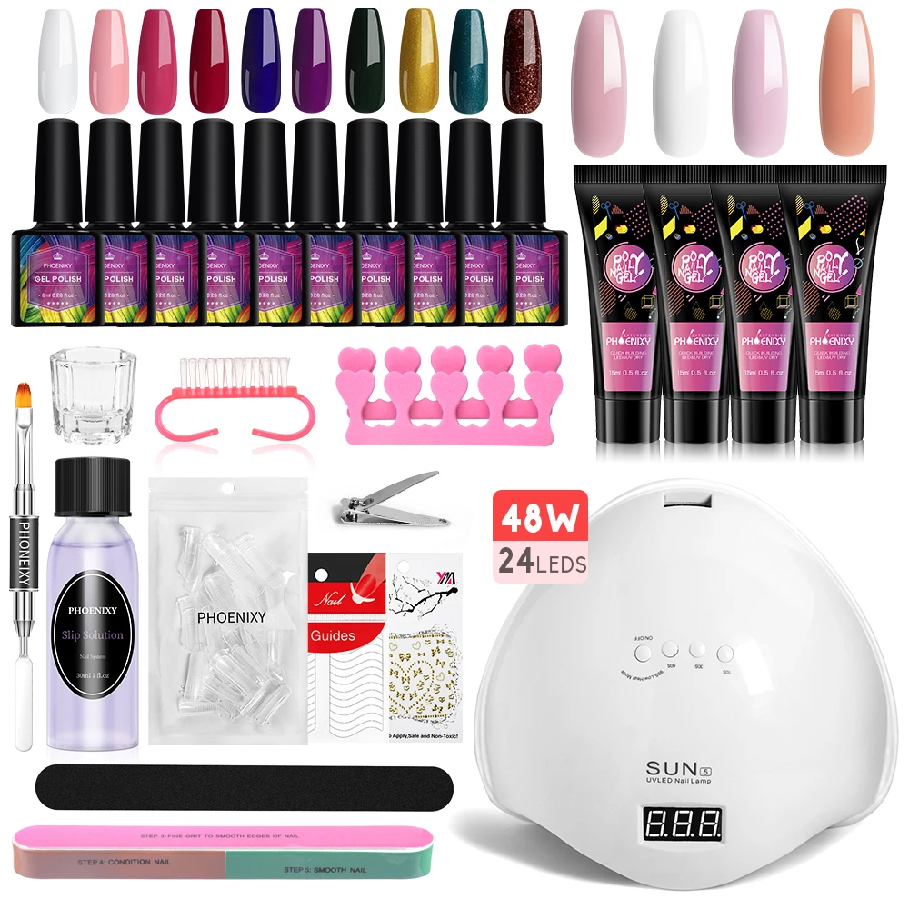 Технические полуперманентные технические детали для маникюра, домашний набор гелевых ногтей, стартовый набор для ногтей с УФ светодиодный Ной лампой