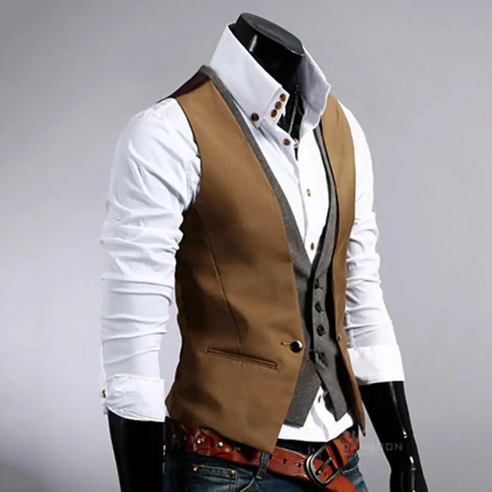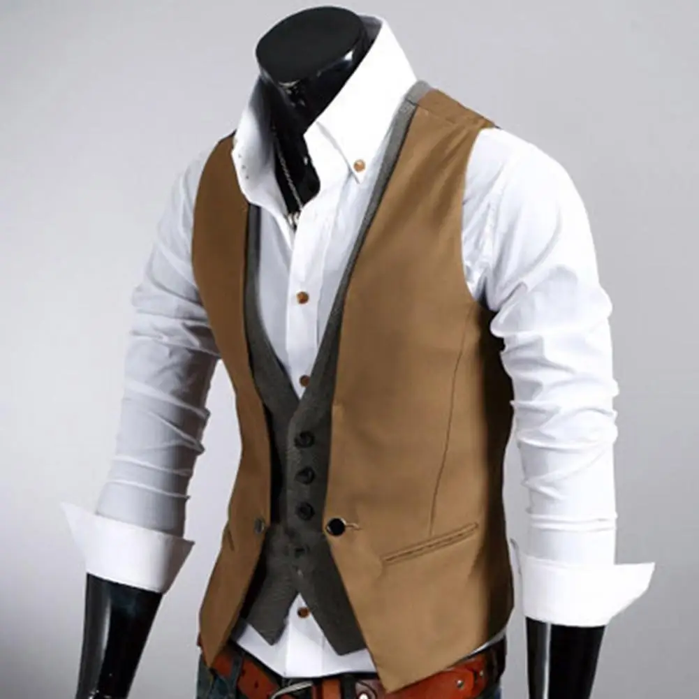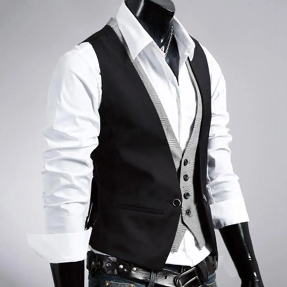 Мужской жилет, деловой однотонный жилет на одной пуговице, искусственная двухкомпонентная Повседневная облегающая безрукавка с V-образным вырезом