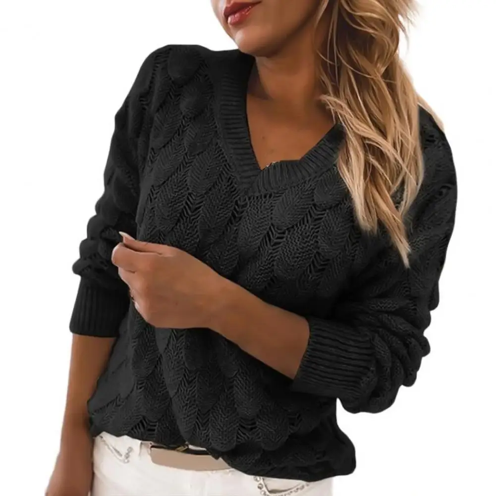 Женский хлопковый пуловер с длинным рукавом и V-образным вырезом