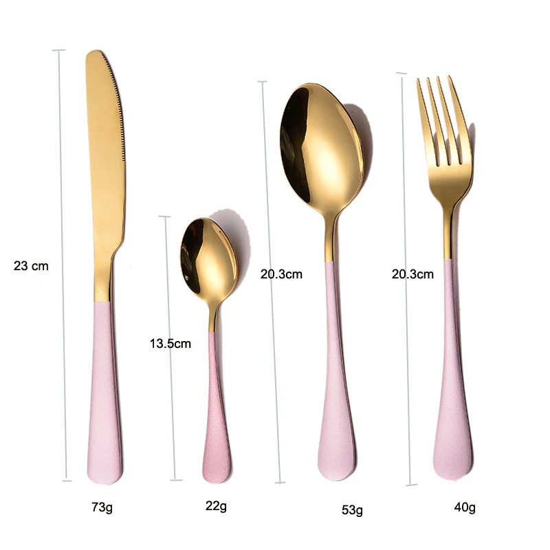Набор золотых столовых приборов с розовой ручкой, 24 шт.