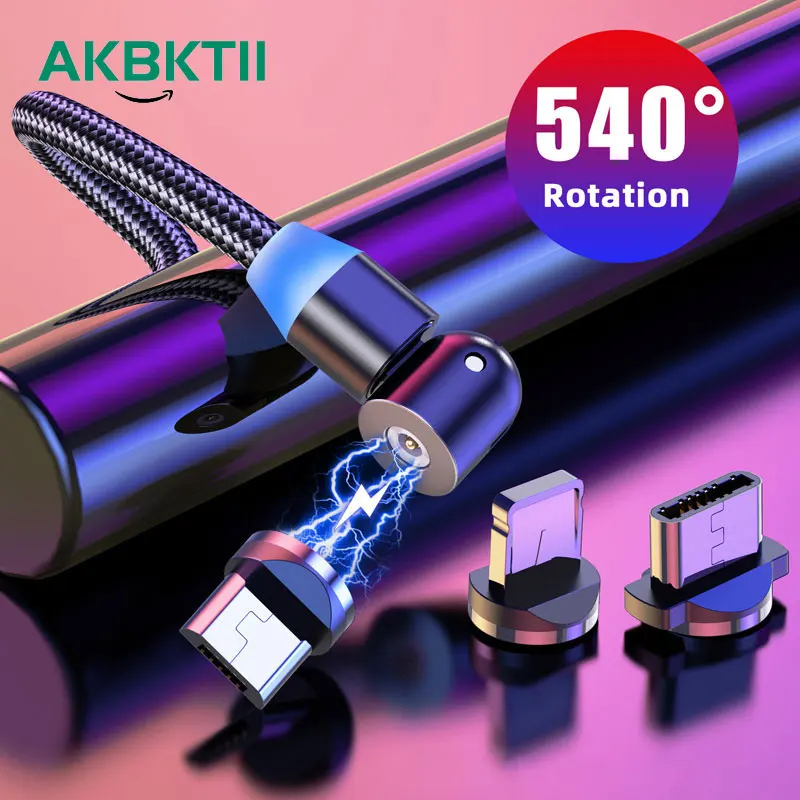 Магнитный зарядный кабель AKBKTII 540, кабель Micro USB Type C для iPhone, Магнитный зарядный кабель для мобильный телефон, USB шнур