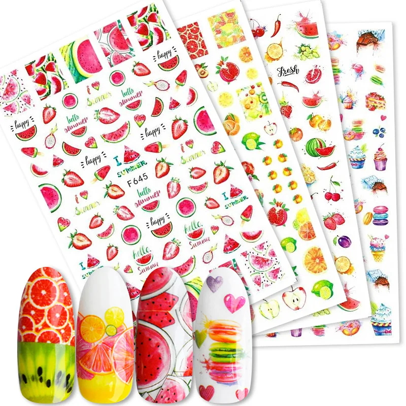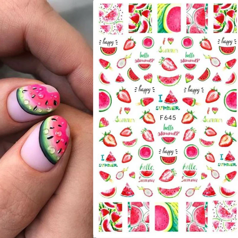 Слайдеры для ногтей, фрукты, фрукты, арбуз, клубника, оранжевый, 3D наклейки для ногтей, новый дизайн, декоративные наконечники из фольги