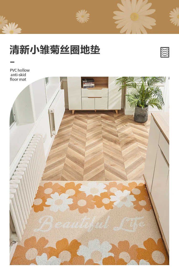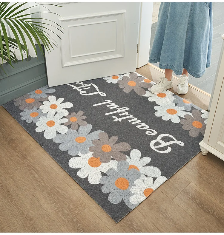 Коврик с рисунком маргаритки может быть изготовлен по индивидуальному заказу, домашний коврик из ПВХ, внутренний коврик для входной двери, нескользящий коврик, легко моющийся коврик