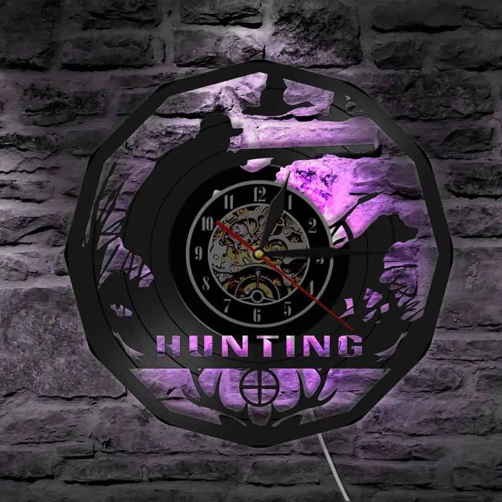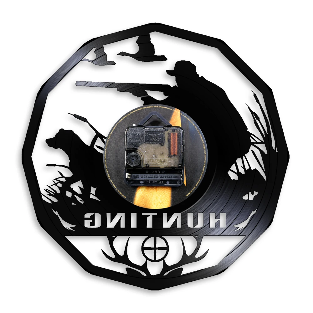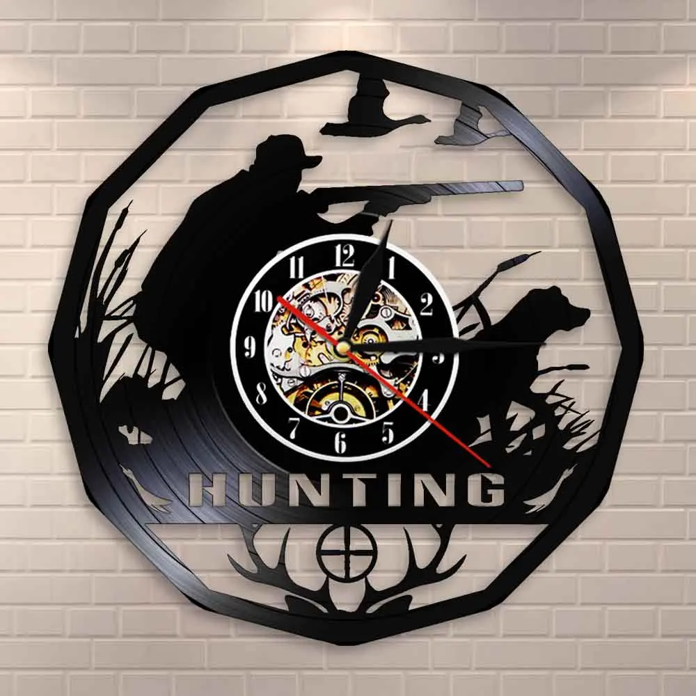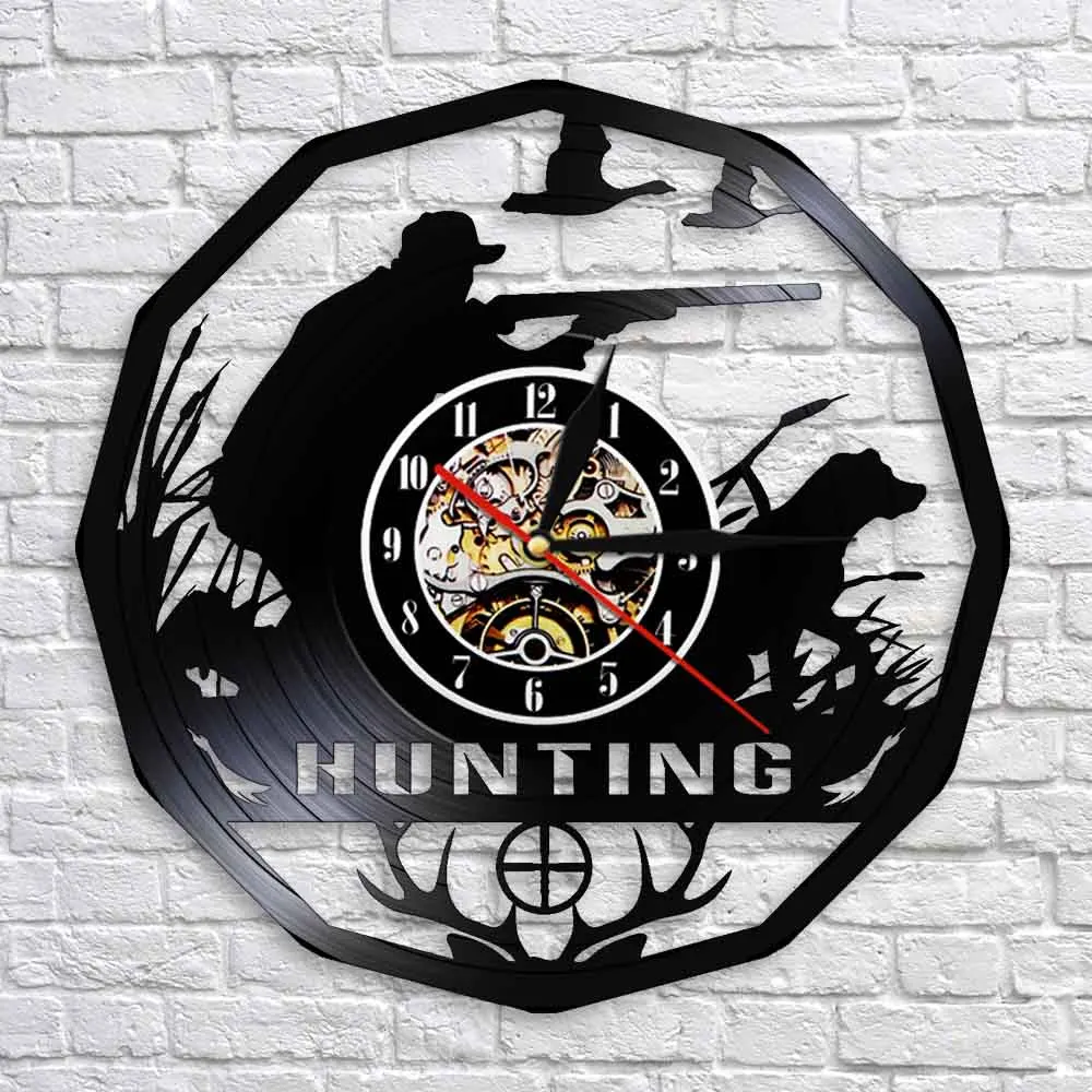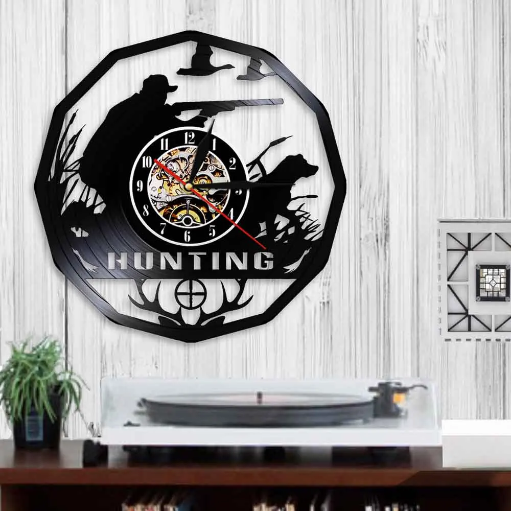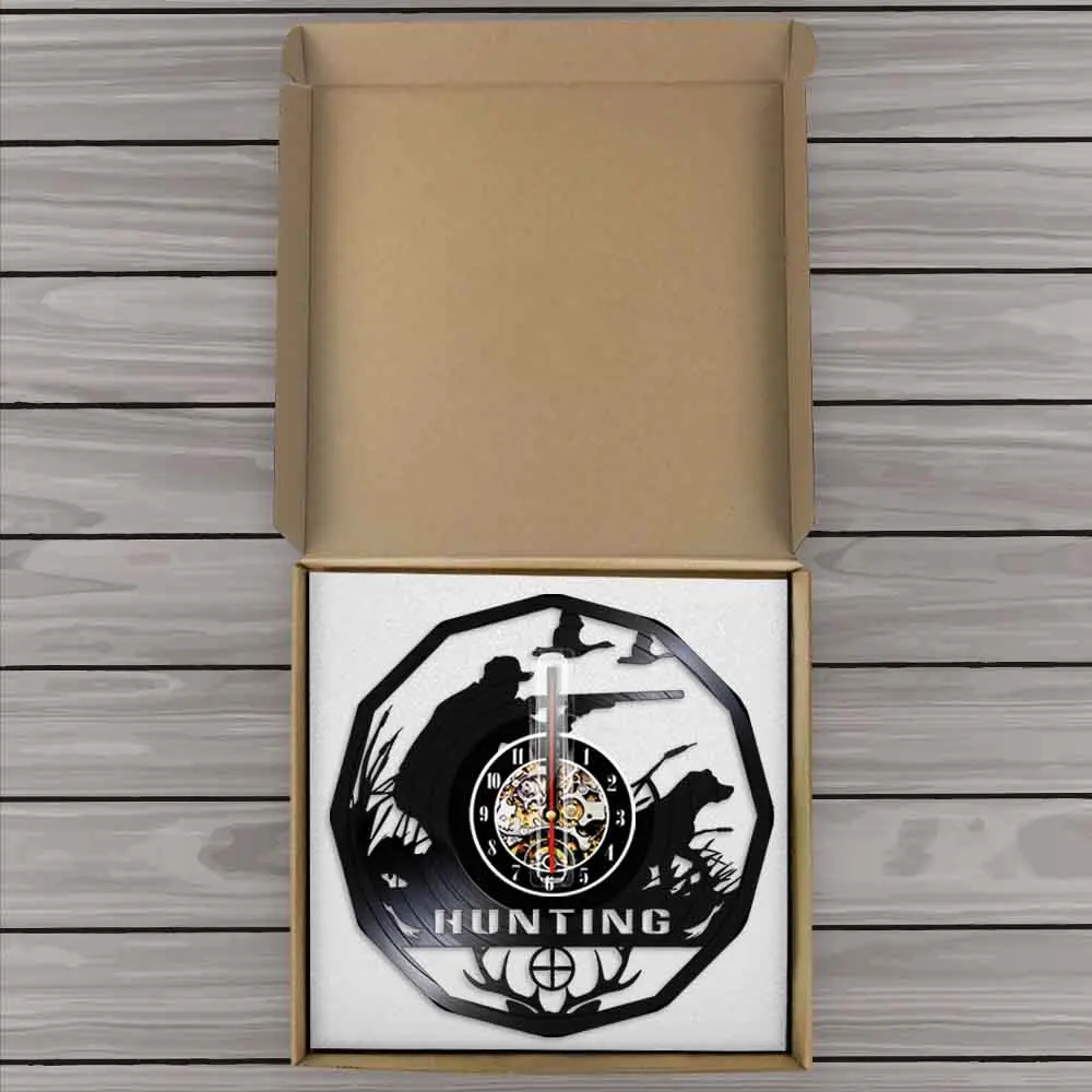 Настенные часы в стиле ретро, с виниловой пластинкой, с изображением животных, оленей, охотников, настенные часы в подарок, прицельные декоративные часы