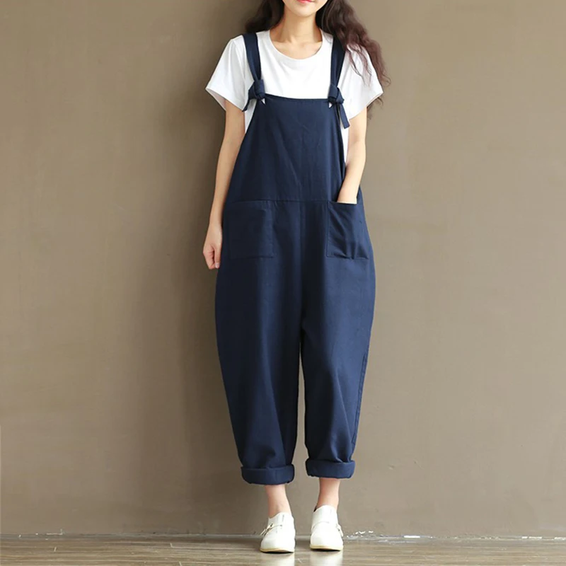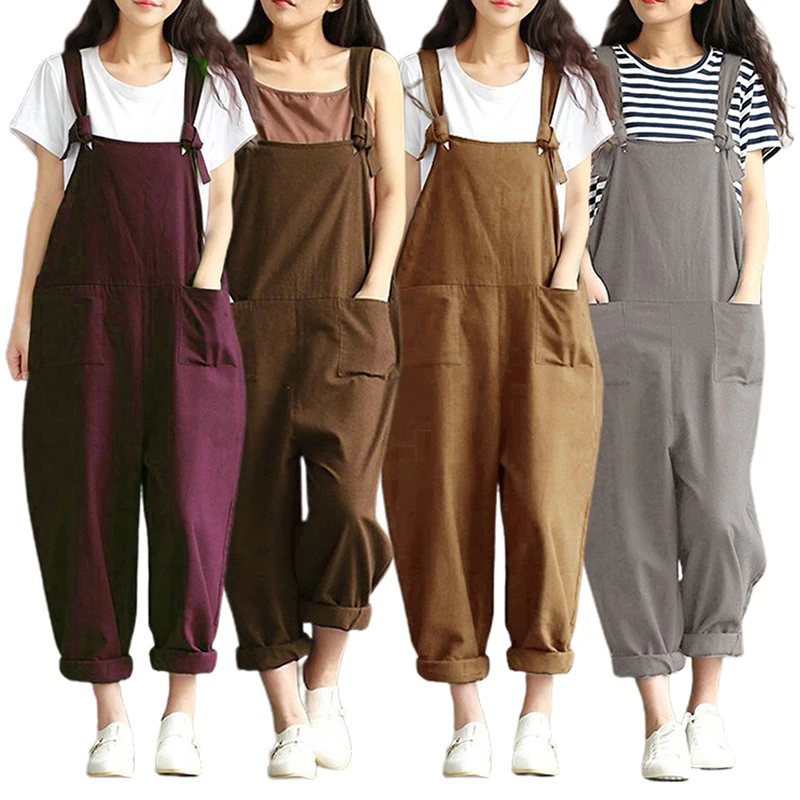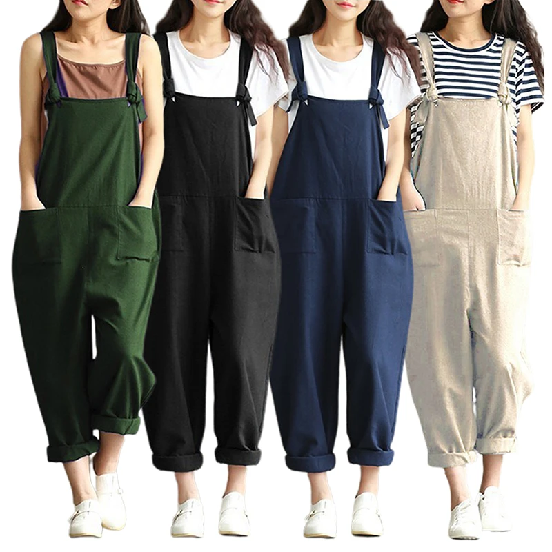 Женский комбинезон на лямках, повседневный комбинезон на бретелях, однотонный, длинные брюки, 2021размер, лето, S-5XL