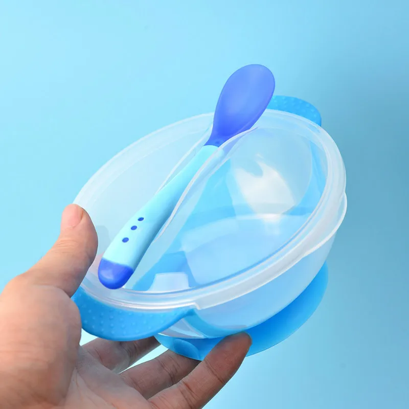 Набор для кормления детей, чашка на присосках, ложка с датчиком температуры, детская посуда, Обучающие блюда, чаша для кормления детей