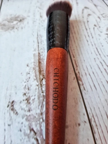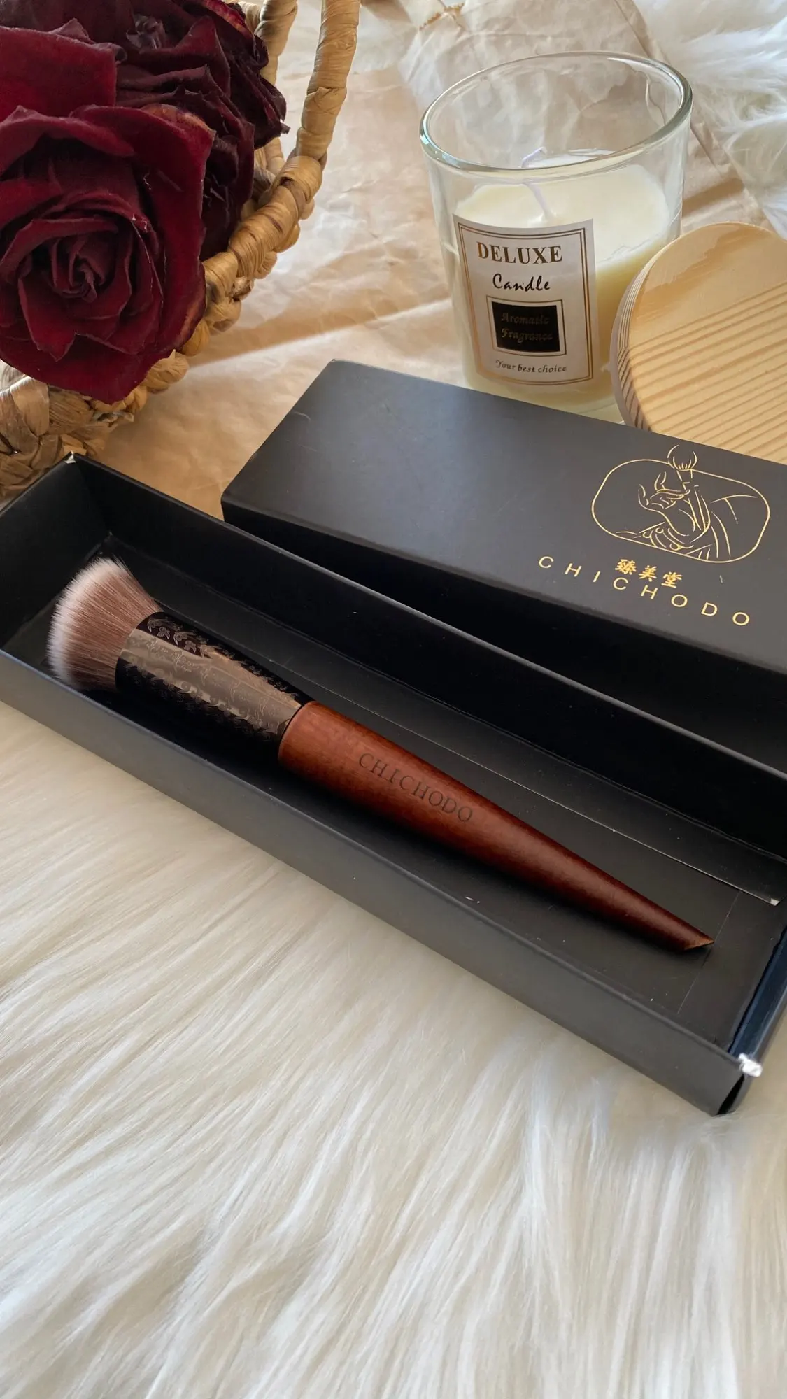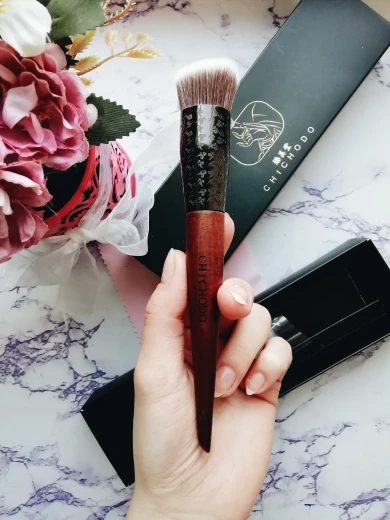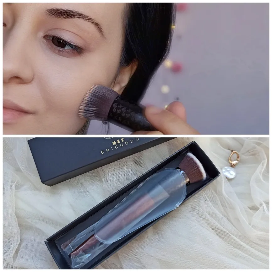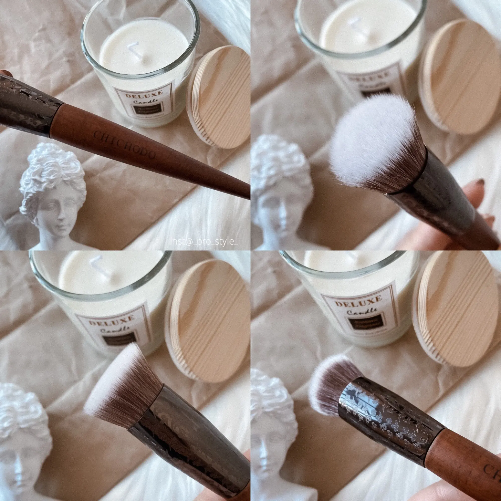 Кисть для нанесения тона от #CHICHODO Oficial store. Очень хорошая, мне понравилась, выполнена качественно. Ручка кисти изготовлена из натурального сандалового дерева. На рукоятке присутствует фирменная надпись изготовителя. ✅ Кисть очень мягкая, плотно набита, ворс не сыпется, не пушится, клей нигде не торчит. Смотрится очень дорого!!! Ворс синтетический, на ощупь приятный. На кисточку надет защитный плотный чехол, поставляется в черной фирменной коробочке. ✅ Кисть отлично подойдет для начинающего и профессионального визажиста, а также на подарок. Доставка заняла около 2,5 недель. Трек-номер отслеживался. Приехала в пакете хорошо упакована. В общем супер кисть за супер цену. К покупке однозначно рекомендую!!! мой инст: @rmnv.03_ali