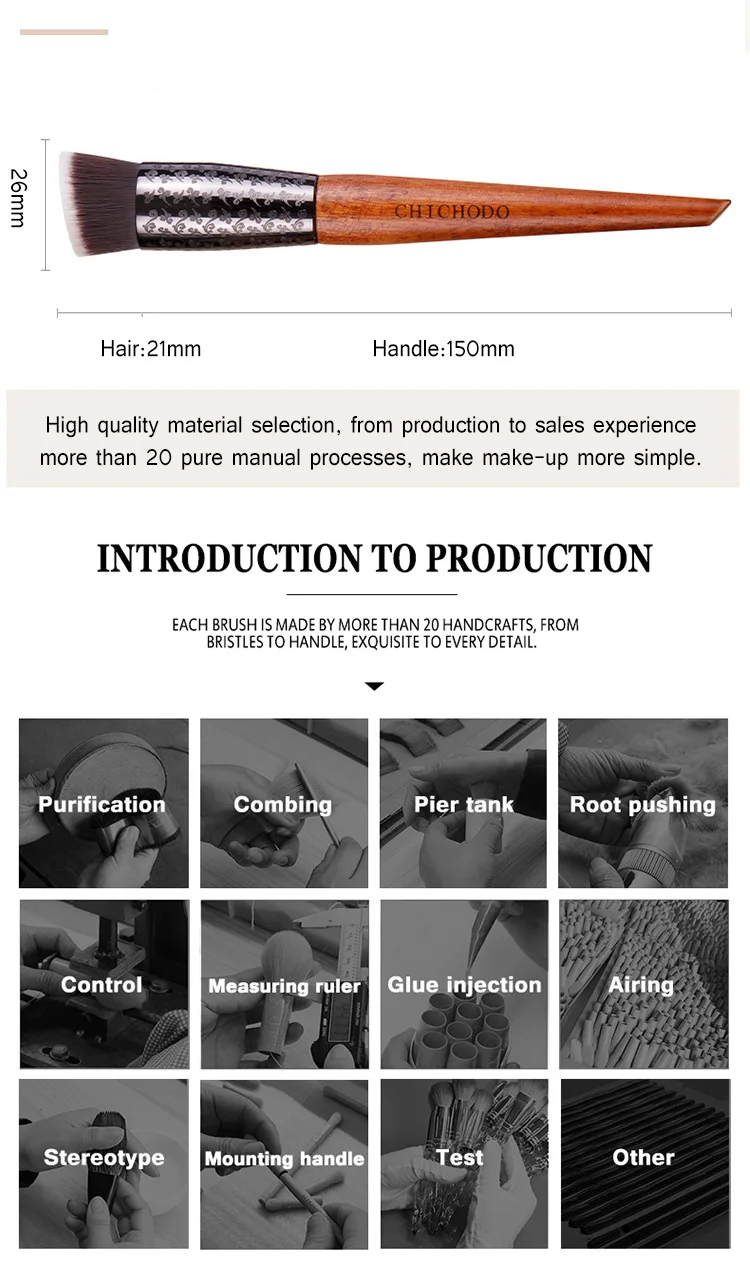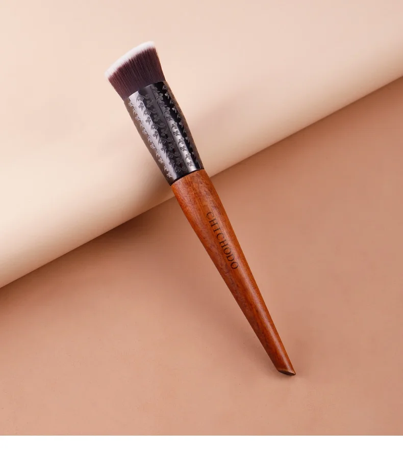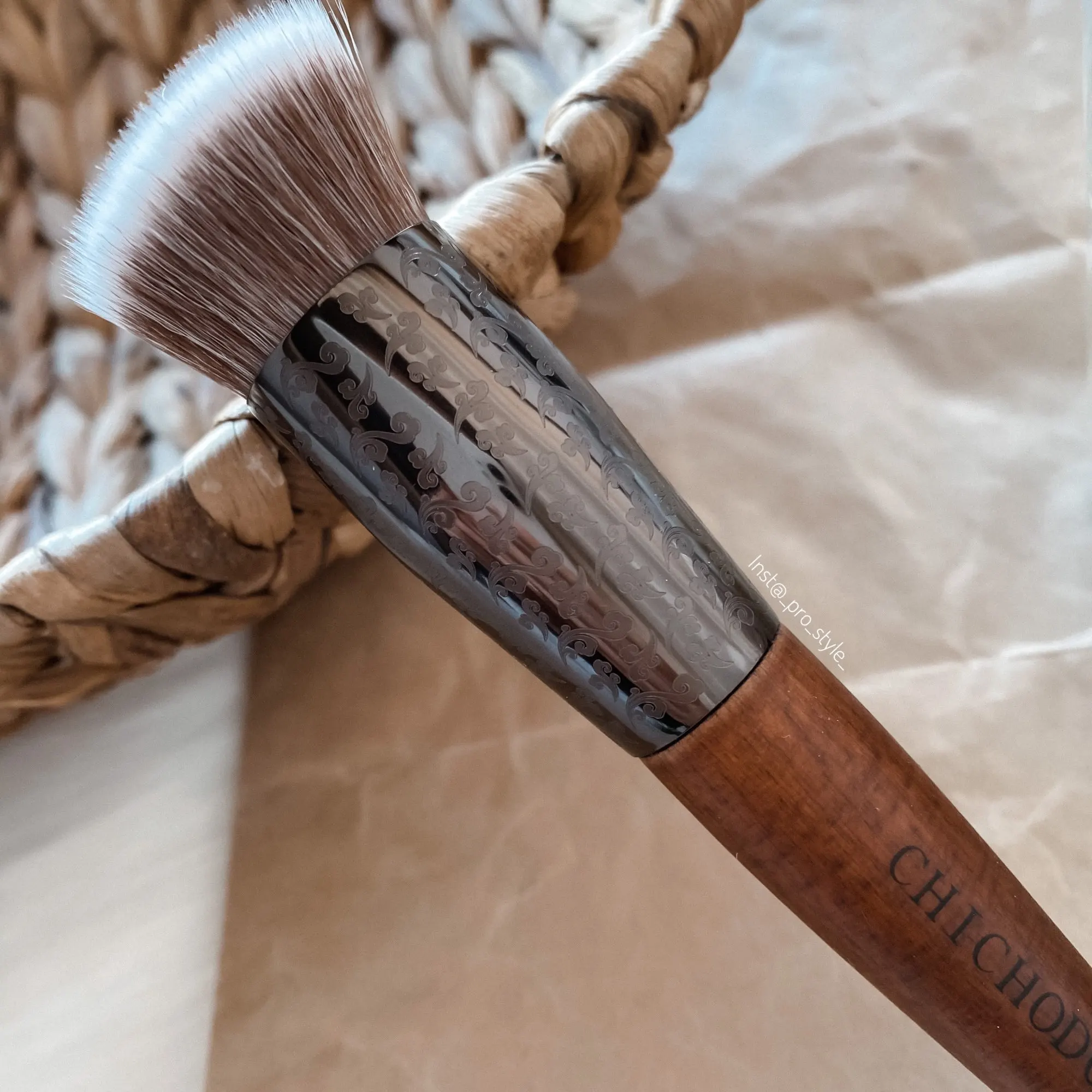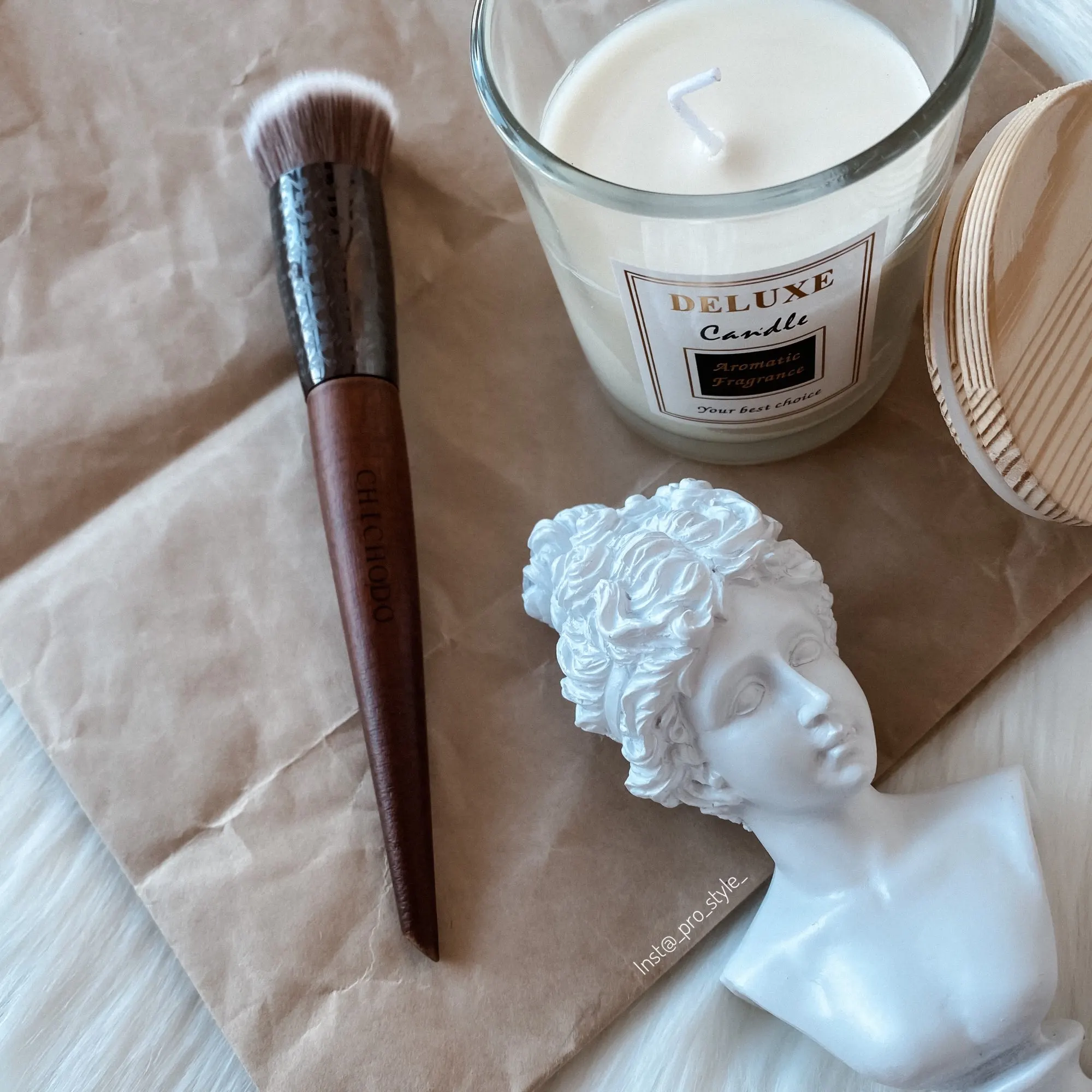 Кисть для нанесения тона от #CHICHODO Oficial store. Очень хорошая, мне понравилась, выполнена качественно. Ручка кисти изготовлена из натурального сандалового дерева. На рукоятке присутствует фирменная надпись изготовителя. ✅ Кисть очень мягкая, плотно набита, ворс не сыпется, не пушится, клей нигде не торчит. Смотрится очень дорого!!! Ворс синтетический, на ощупь приятный. На кисточку надет защитный плотный чехол, поставляется в черной фирменной коробочке. ✅ Кисть отлично подойдет для начинающего и профессионального визажиста, а также на подарок. Доставка заняла около 2,5 недель. Трек-номер отслеживался. Приехала в пакете хорошо упакована. В общем супер кисть за супер цену. К покупке однозначно рекомендую!!! мой инст: @rmnv.03_ali