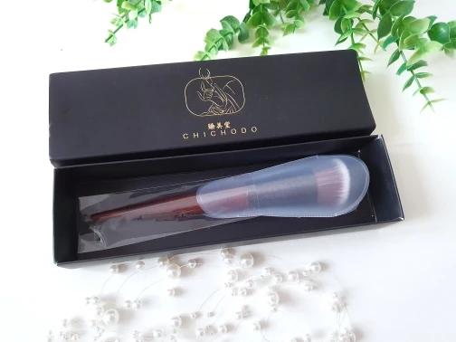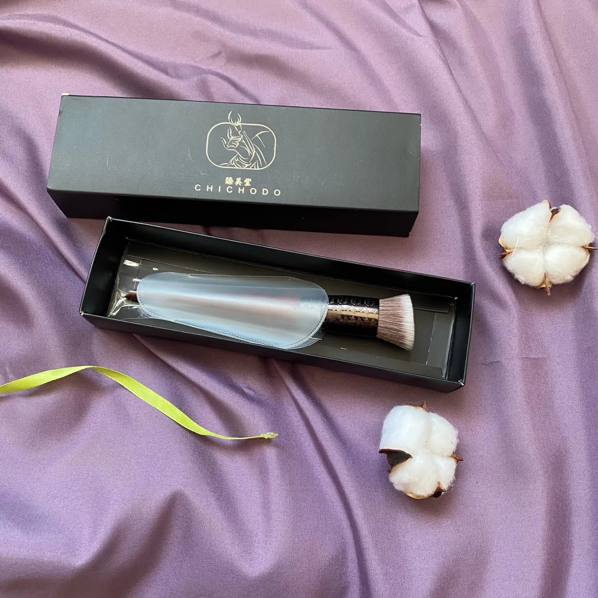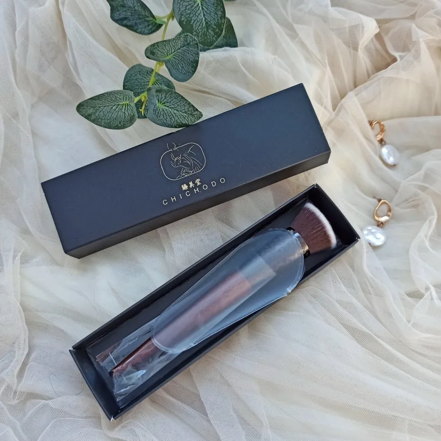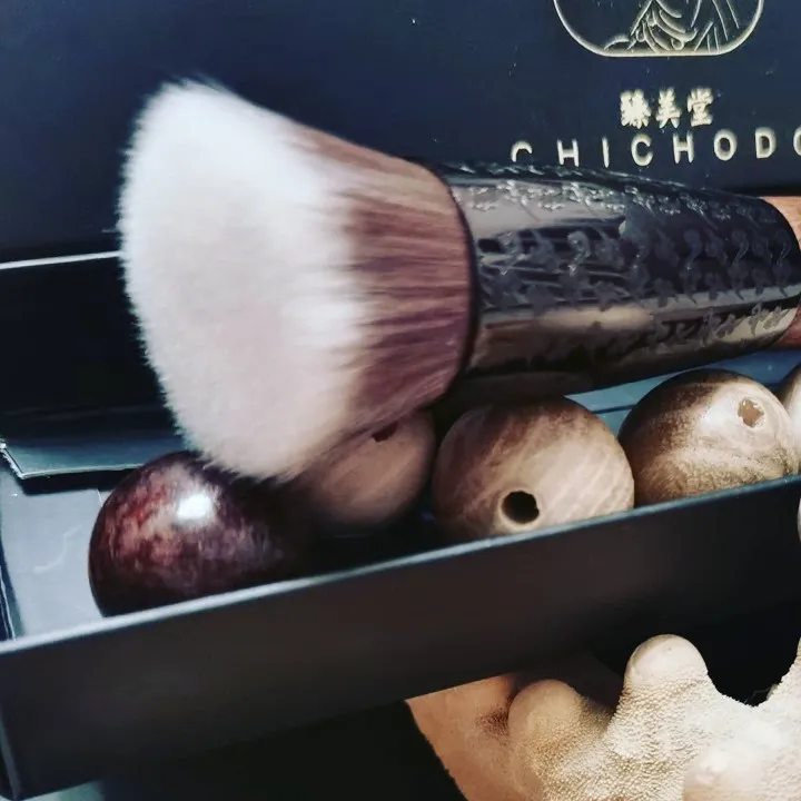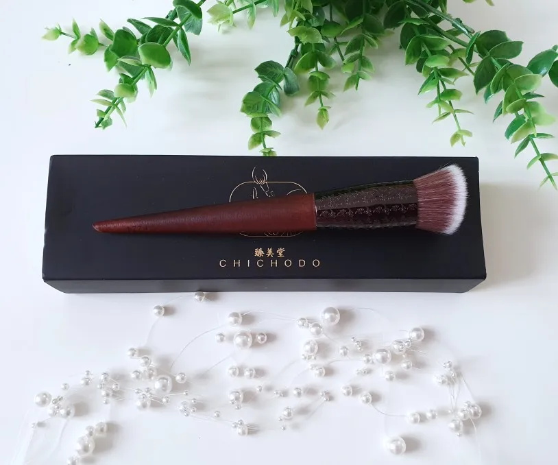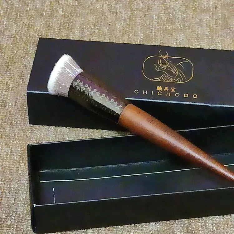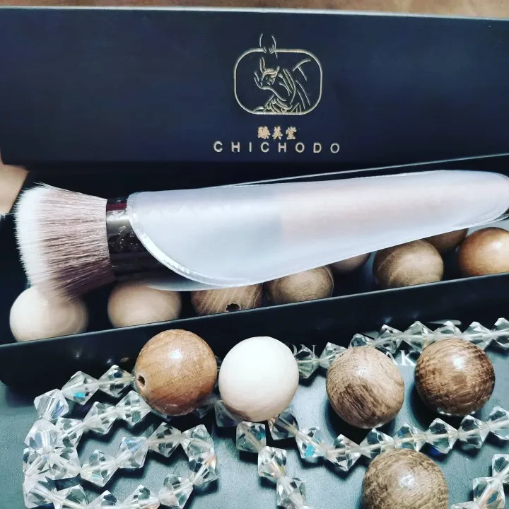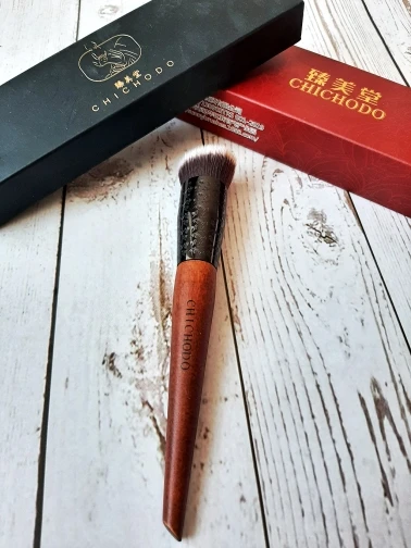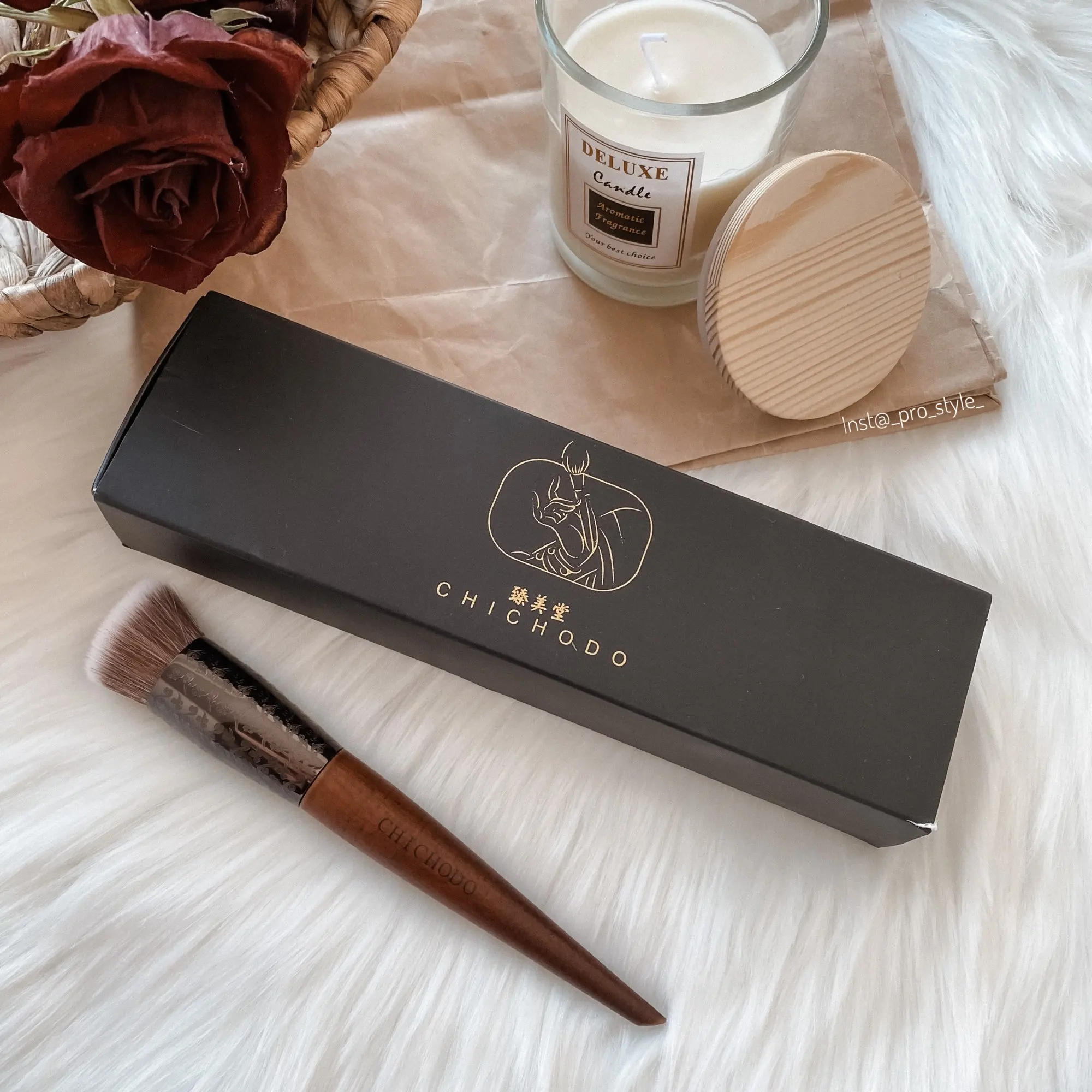 Кисть для жидкой тональный основы CHICHODO Подарочная чёрная матовая коробка с логотипом На подарок вообще супер Кисть в защитным чехле Ворс плотно набит, в меру упругий. Ручка из сандала, втулка алюминиевая с красивой гравировкой Идеально тушует тональную основу А в магазине есть другие кисти такой модели, которые обязательное приобрету для набора.