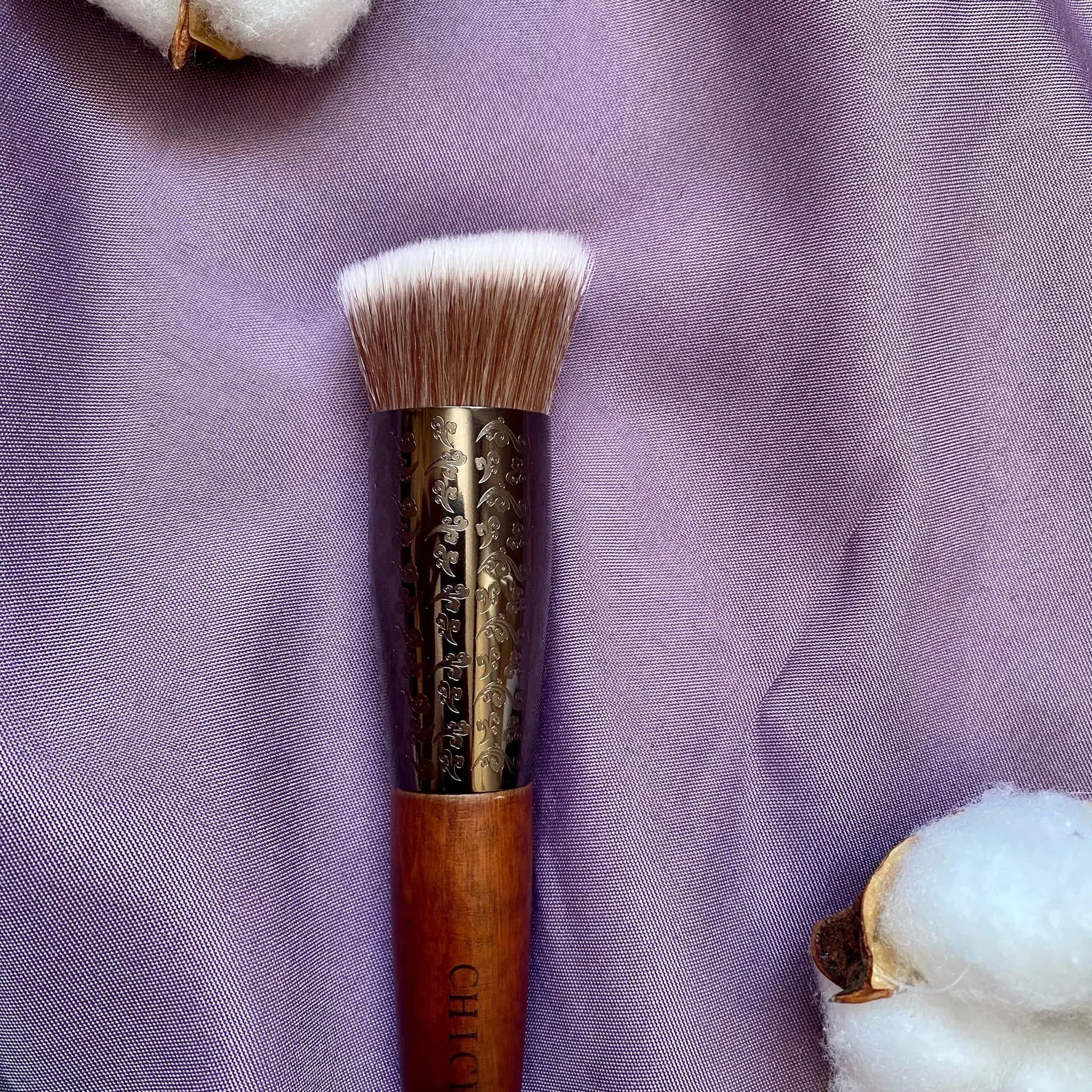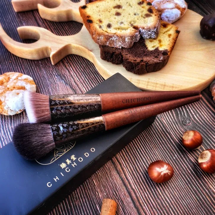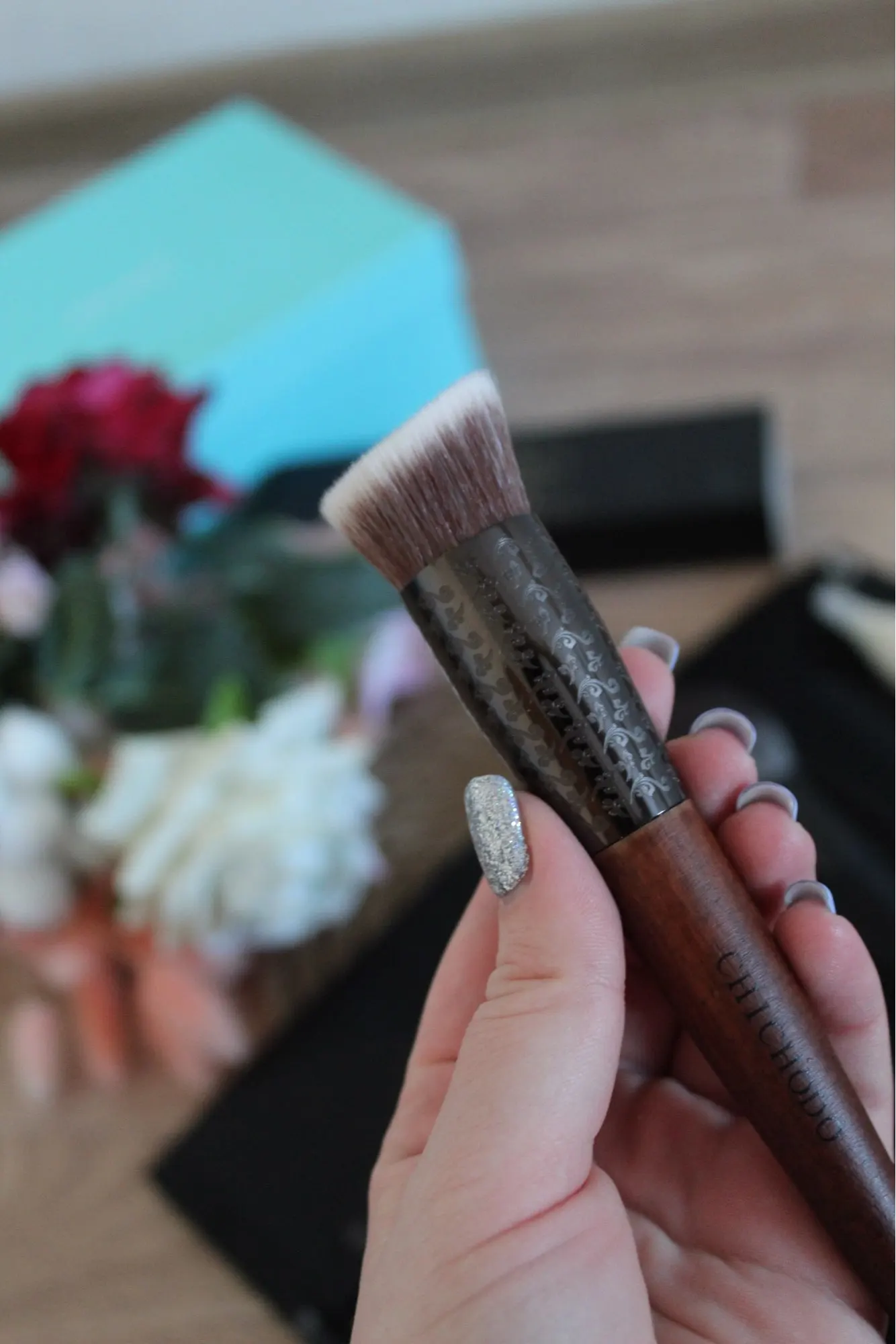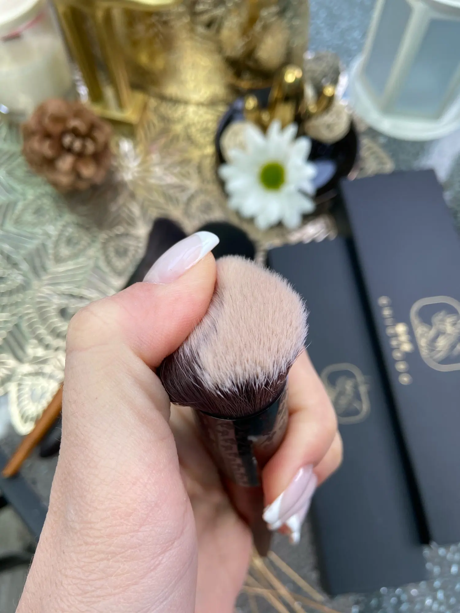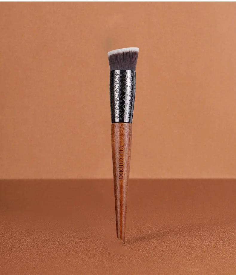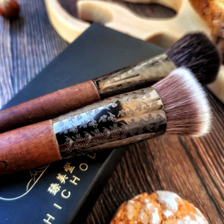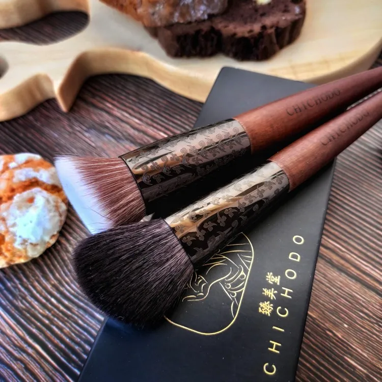 Кисть для жидкой тональный основы CHICHODO Подарочная чёрная матовая коробка с логотипом На подарок вообще супер Кисть в защитным чехле Ворс плотно набит, в меру упругий. Ручка из сандала, втулка алюминиевая с красивой гравировкой Идеально тушует тональную основу А в магазине есть другие кисти такой модели, которые обязательное приобрету для набора.