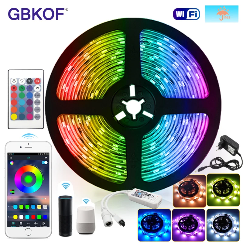 Светодиодная лента Magic Home RGB светильник Wi-Fi контроллером, водонепроницаемая светодиодная лента 5050 RGB 5 м, 10 м, 15 м, 12 В постоянного тока, адаптер, гибкая лента с Alexa Google Home