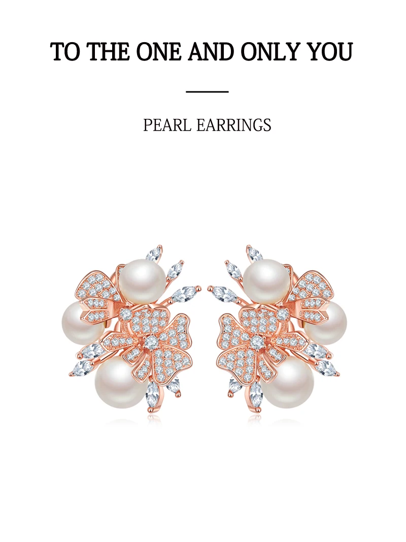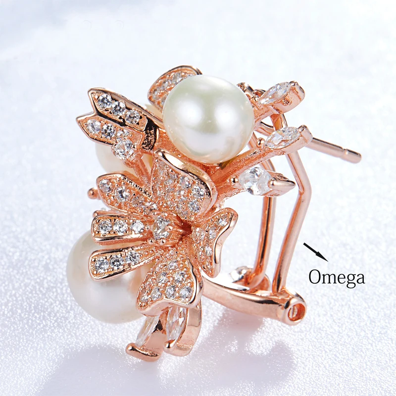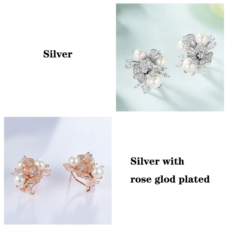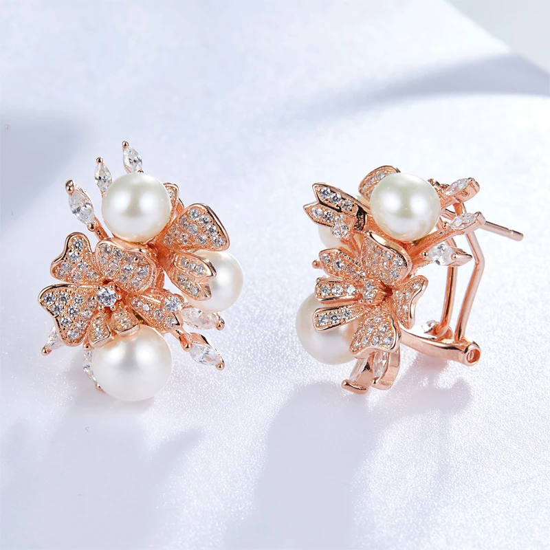 925 стерлингового серебра модные Новый стиль высокое качество циркон жемчуг цветок клип серьги для женщин Свадебная вечеринка Роскошные ювелирные изделия