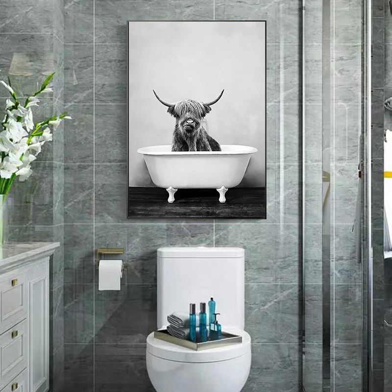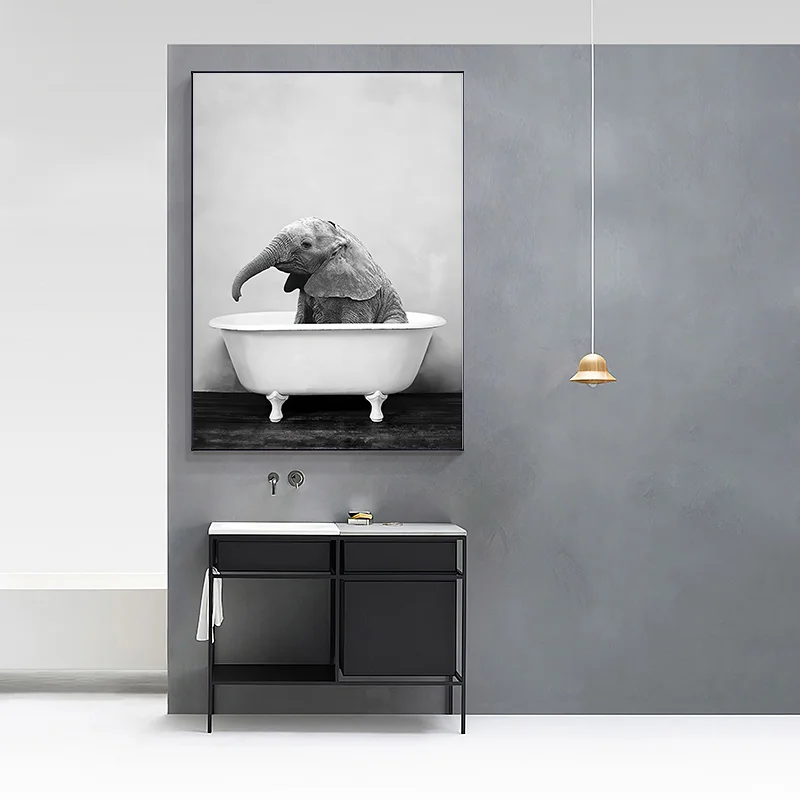 Черно-белый настенный постер Simle с изображением животных для ванн...