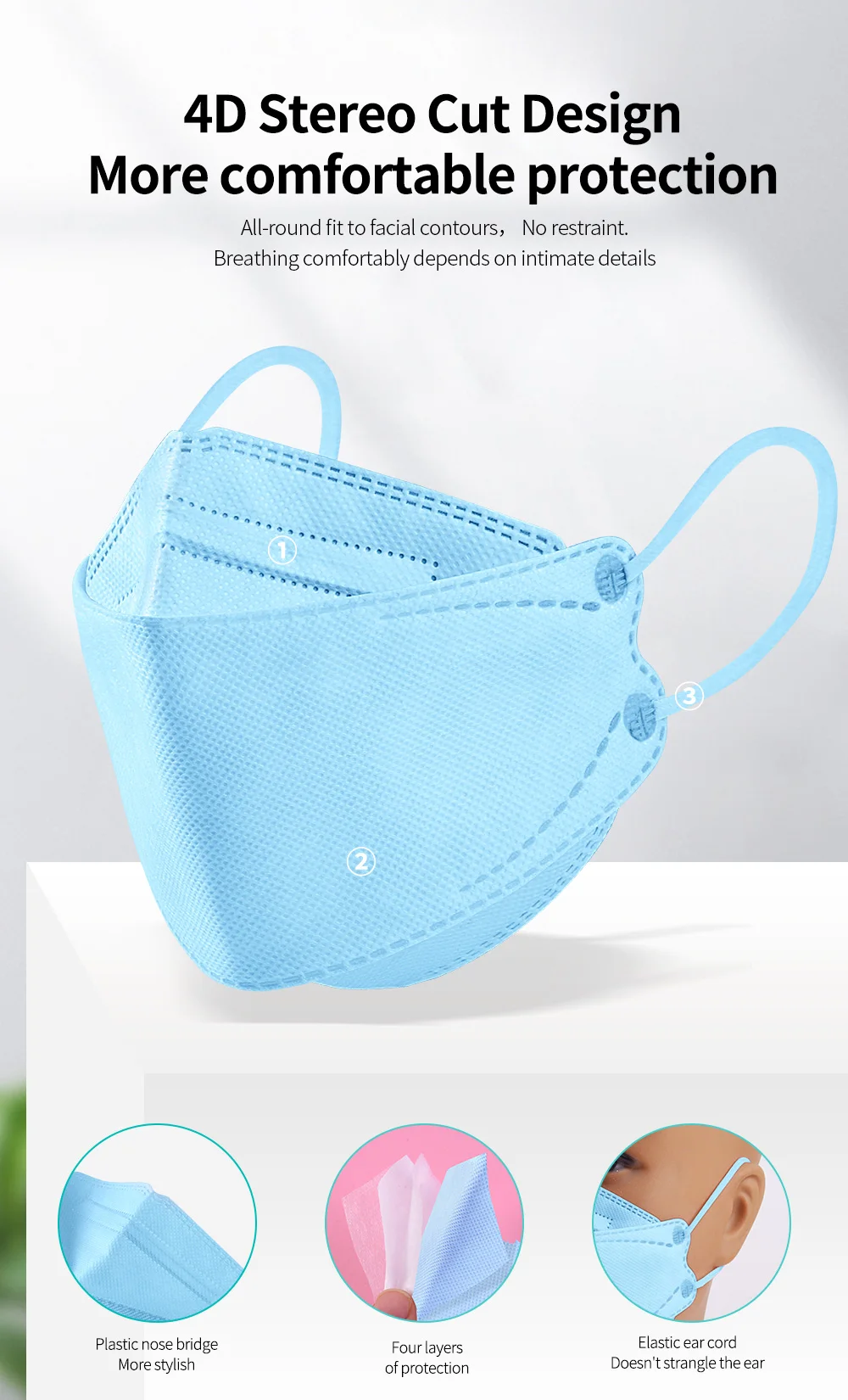 Защитный респиратор Fish KN95 PM25 4-слойный, пылезащитный, противотуманный