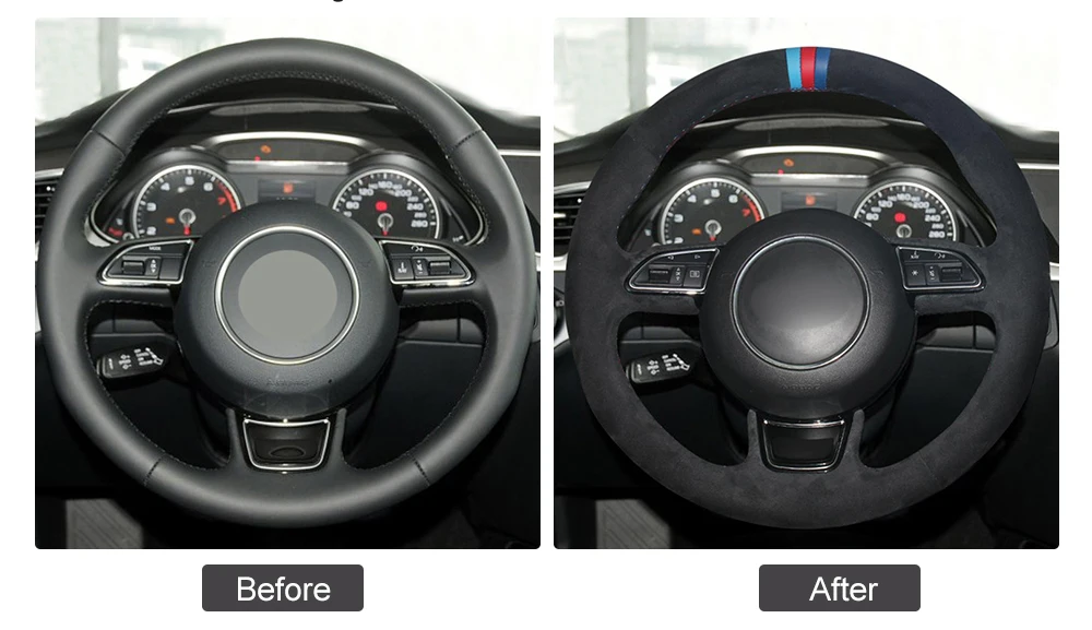 Ручной работы черная замша чехол рулевого колеса автомобиля для Aud...