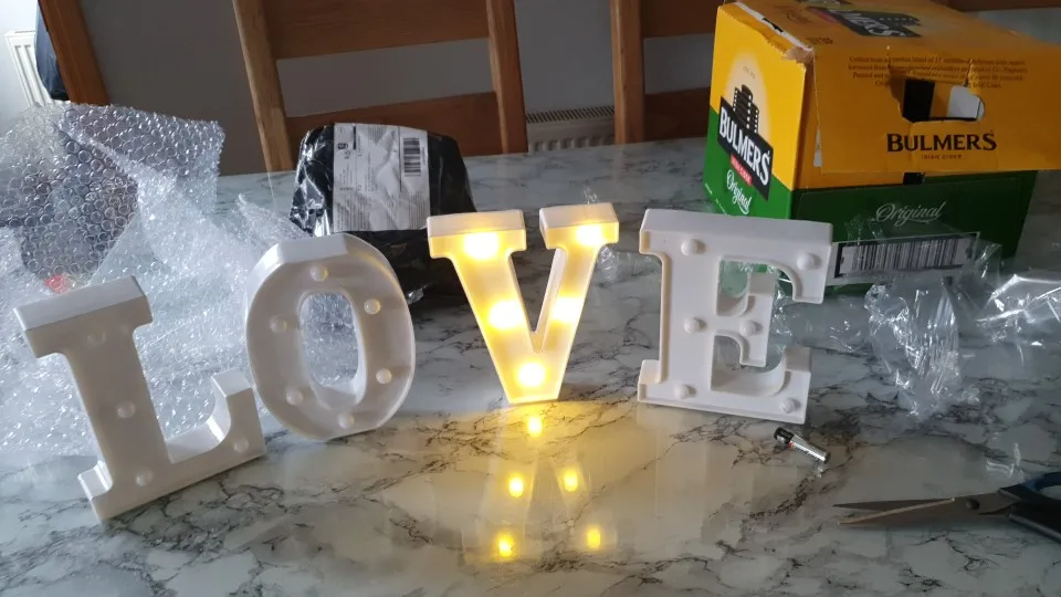 Так же, как они были описаны. Один прибыл сломанный, часть буквы физически отключается, один не загорается, когда батарея входит в него. Разочарован, но в целом все еще работает как новый товар. Продавец не ответил, когда я жаловался на неисправные и сломанные товары, но я не ожидал. При освещении ночью они выглядят хорошо и создают улыбку, которая была эффектом, которым я был.