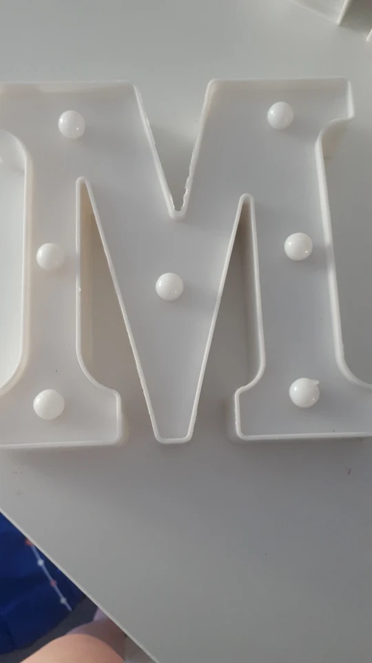 Это очень красиво, только, как видно на изображении на продажу, я думал, что у меня было больше лампочек .. Я не знаю, если это так или нет, но казалось, что он пропустит один, особенно посередине буквы, есть место, чтобы положить его на изображение, вы можете увидеть 8 лампочек, мой костюм 4 .. В противном случае это работает, и моей дочери это очень понравилось.