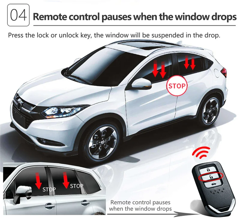 Пульт для нажатия на кнопку"Замок"Оригинального автомобильного ключа 4 окна поднимаются закрытыми.