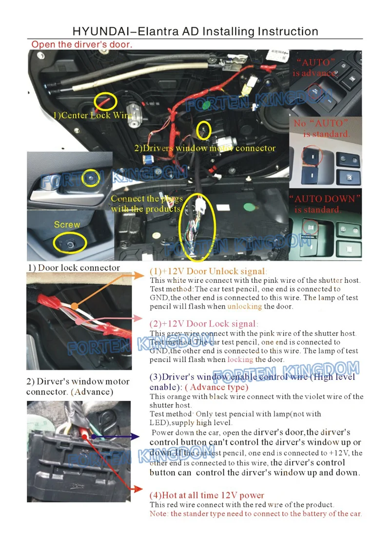 Комплект для автоматического закрытия окна автомобиля Forten Kingdom для Hyundai Elantra CN7 2021