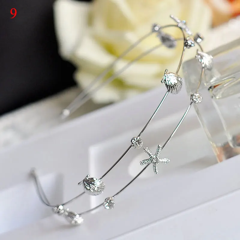 Ободок для волос Женский, из сплава, с жемчужными цветами и морскими звездами