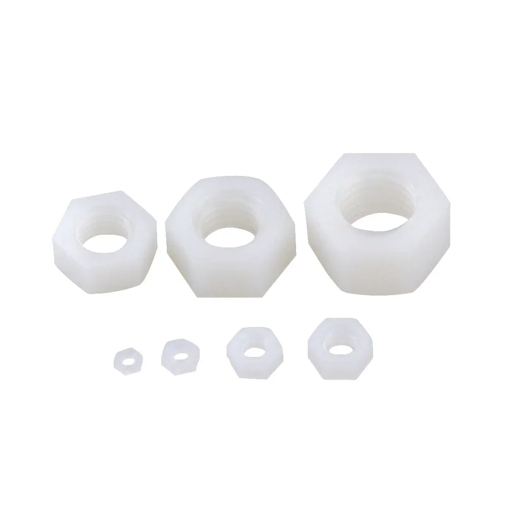 Белые DIN934 M2 M2.5 M3 M4 M5 M6 M8 M10 M12 M14 M16 M18 M20 нейлоновые шестигранные гайки, шестигранные пластиковые гайки для болтов