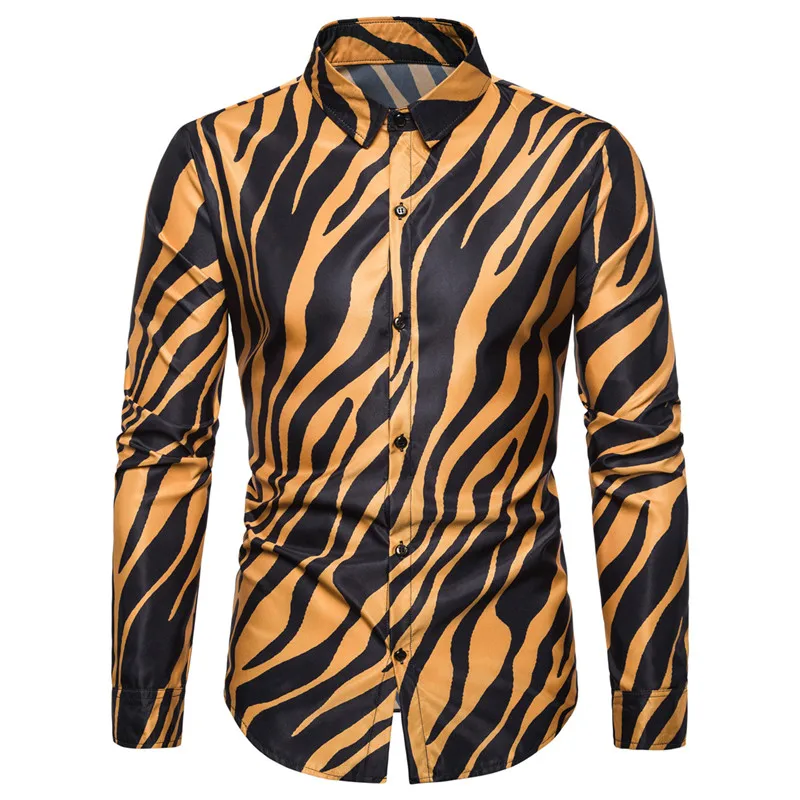 Рубашка мужская, с принтом зебры, с длинным рукавом