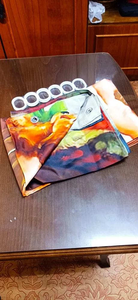 ● Ткань из 100% полиэстера. Крючки для душевой включены.
