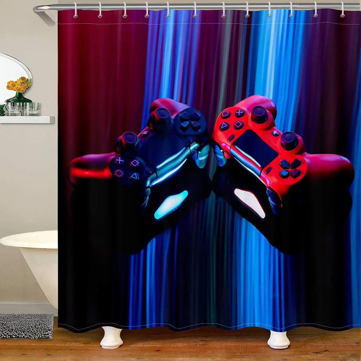 Игровая занавеска для душа, черная, красная занавеска для душа, занавеска для современных игр, занавеска для ванной комнаты, кнопки управления игровой консолью для ванной комнаты
