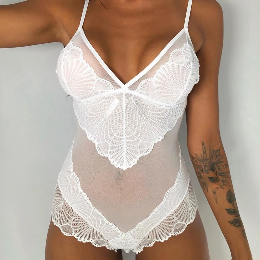 Женское боди на бретельках с V-образным вырезом, сексуальное боди, женское белье, Прозрачное нижнее белье