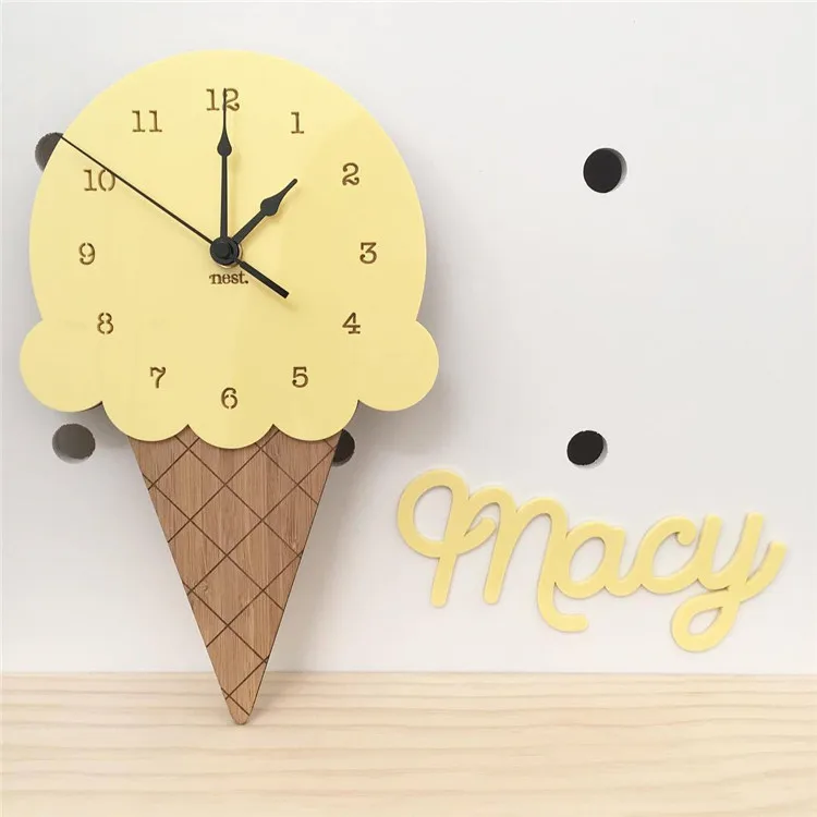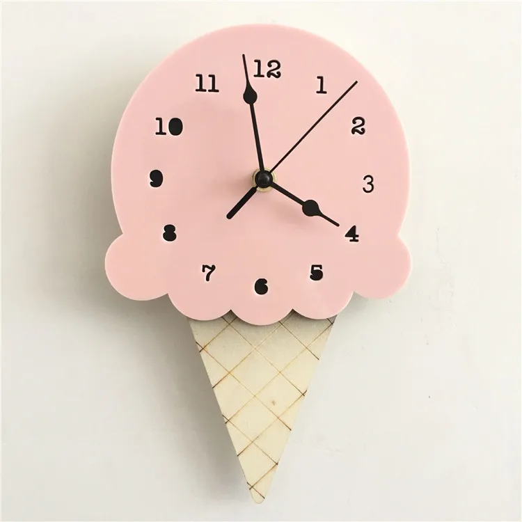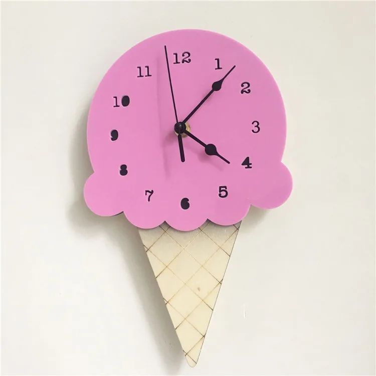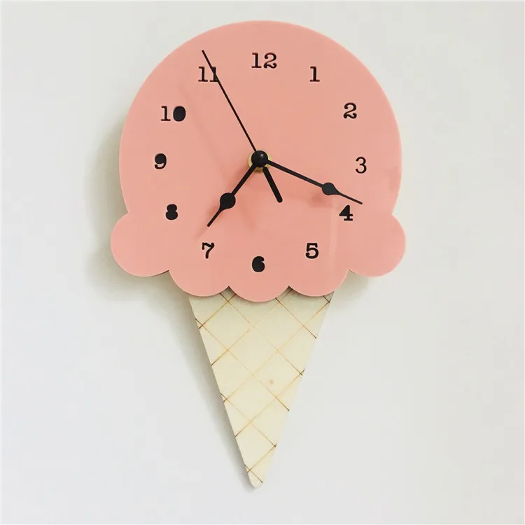 Милые деревянные Мультяшные часы с мороженым, домашний декор, насте...