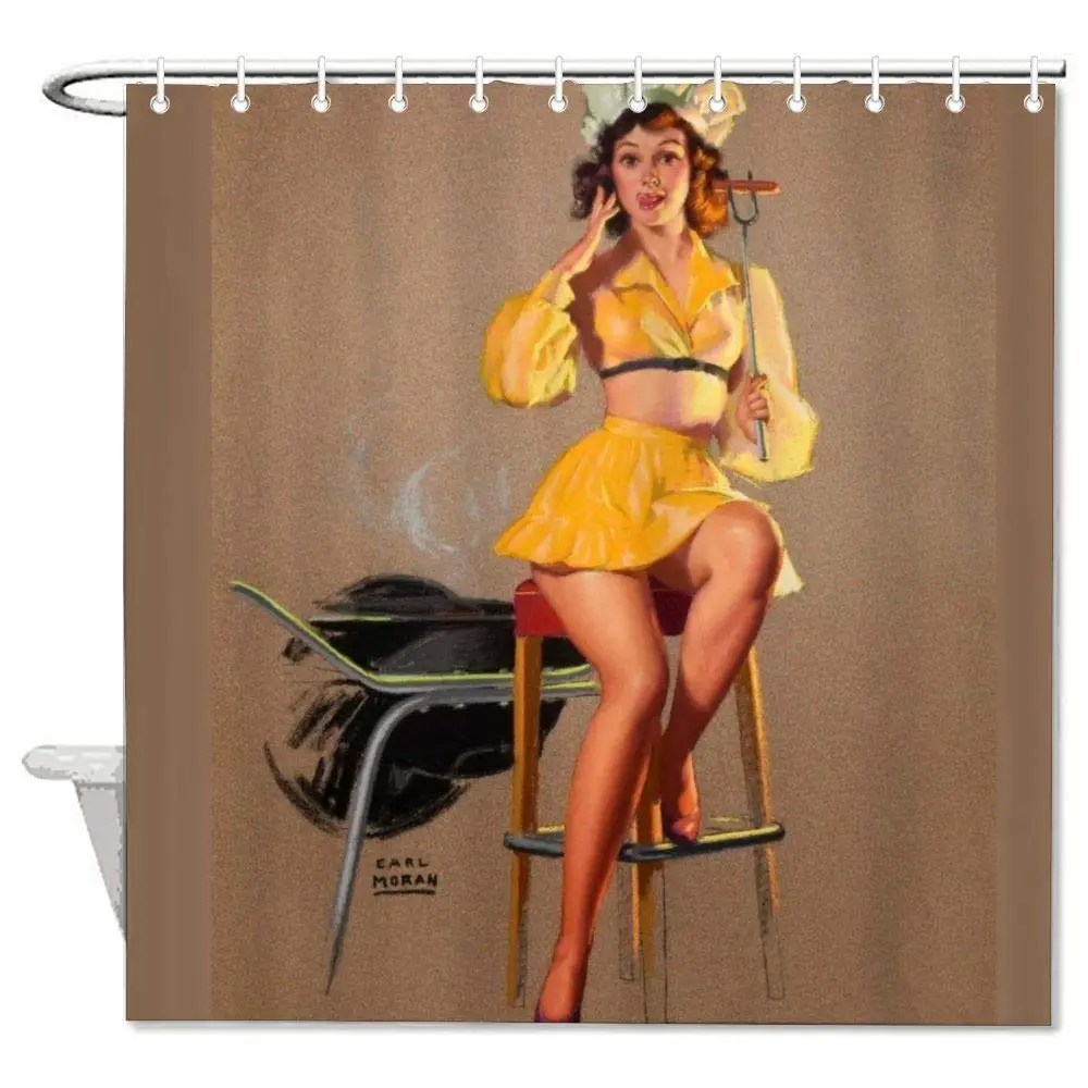 Ванна Шторы What's Пособия по кулинарии хороший внешний вид, Винтаж стильная женская обувь, в стиле пин-ап для девочек душ Шторы с крючками для Ванная комната Декор
