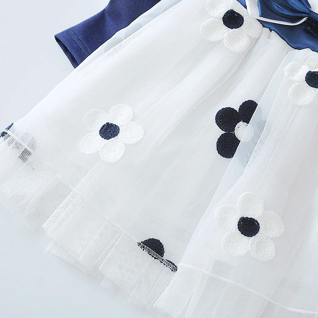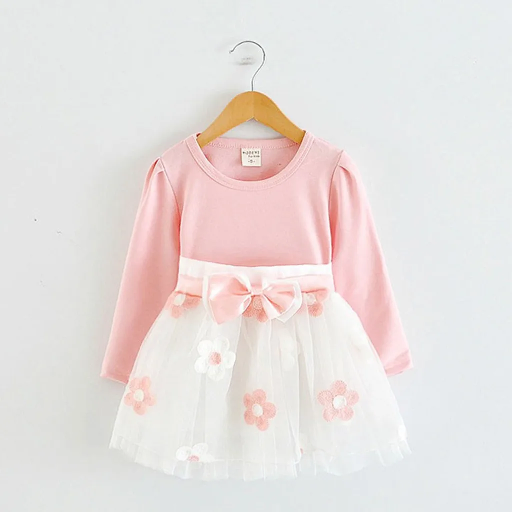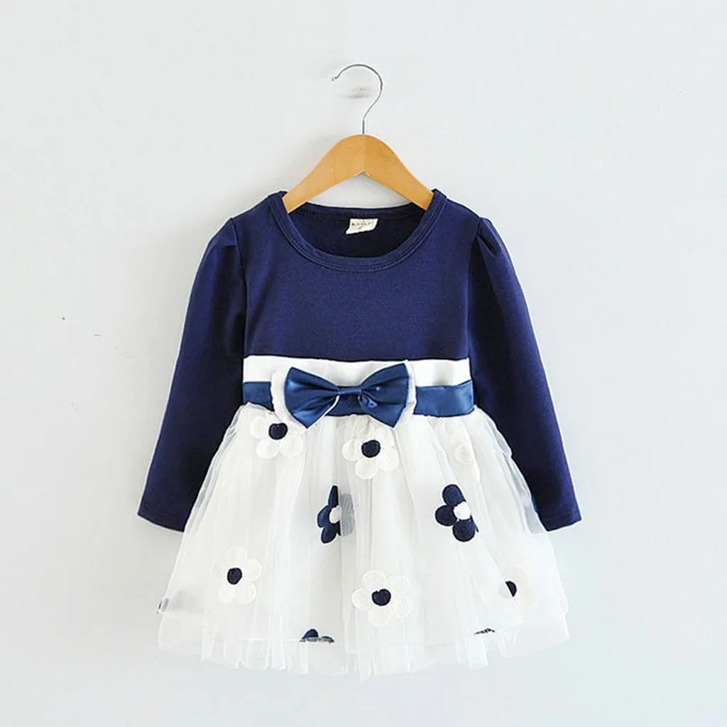 Платья для маленьких девочек, весна 2021, лоскутное платье принцессы из тюля с длинным рукавом и цветочным бантом, детская одежда, платье для девочек, платья