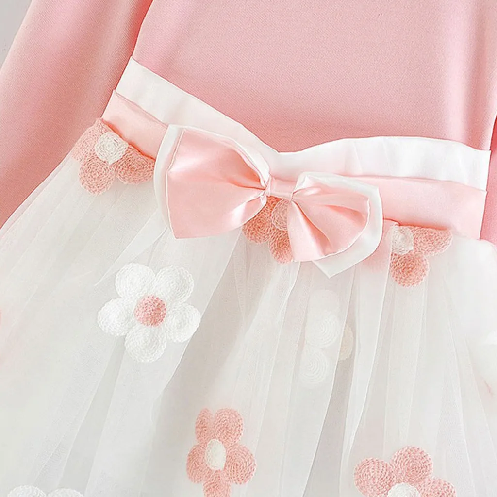 Платье с длинными рукавами и цветочным бантом для маленьких девочек