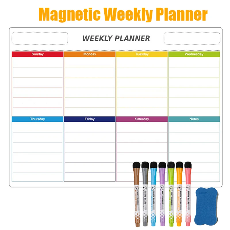 Магнитный Еженедельный планировщик 2021, наклейки на холодильник, календарь, мягкая белая доска для стен, маркеры для сообщения, рисования, памятки, стираемая доска