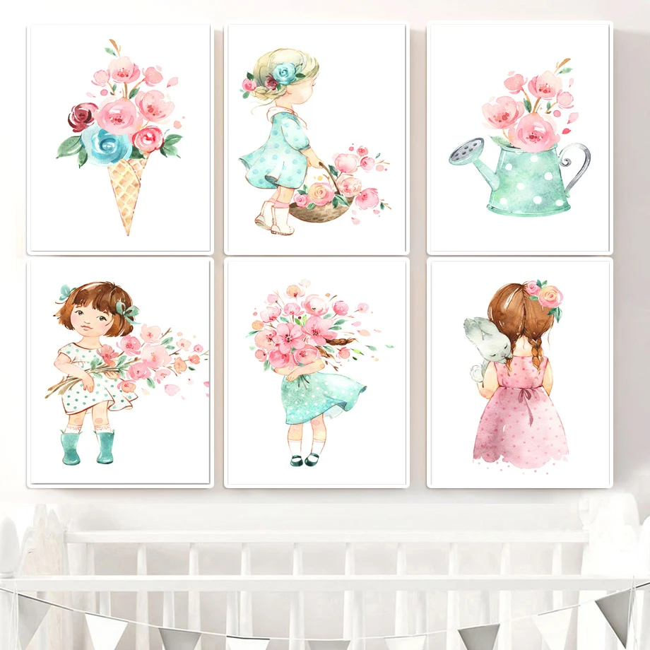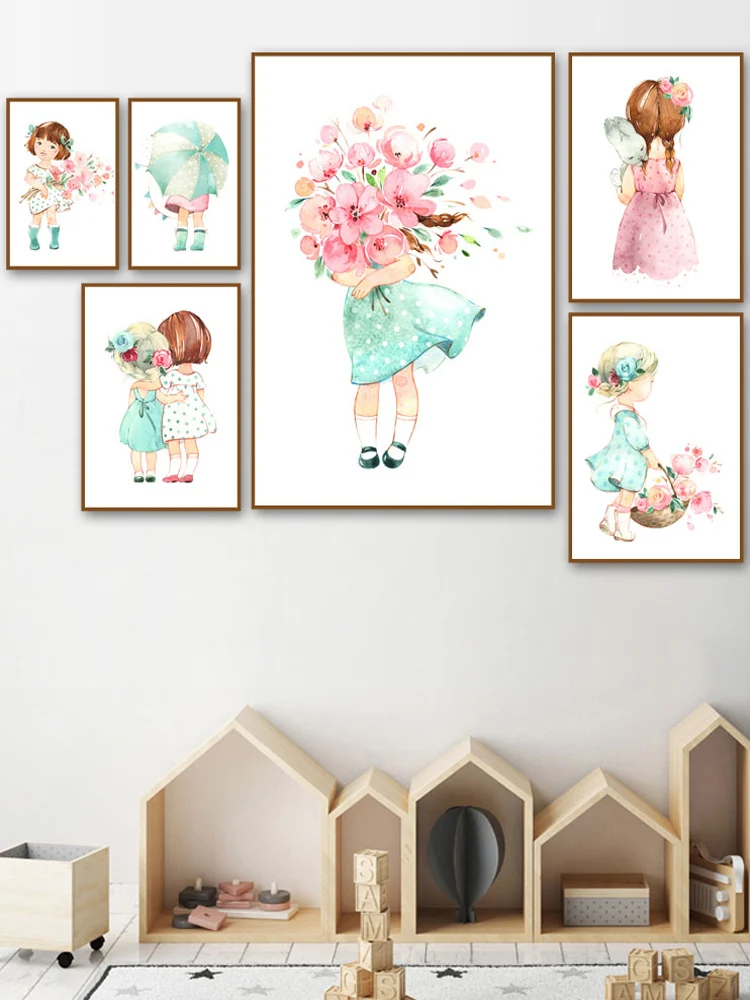 Скандинавская Картина на холсте милые для маленьких девочек розы зонтик Плакаты и принты настенные картины для детской комнаты настенный Декор без рамки