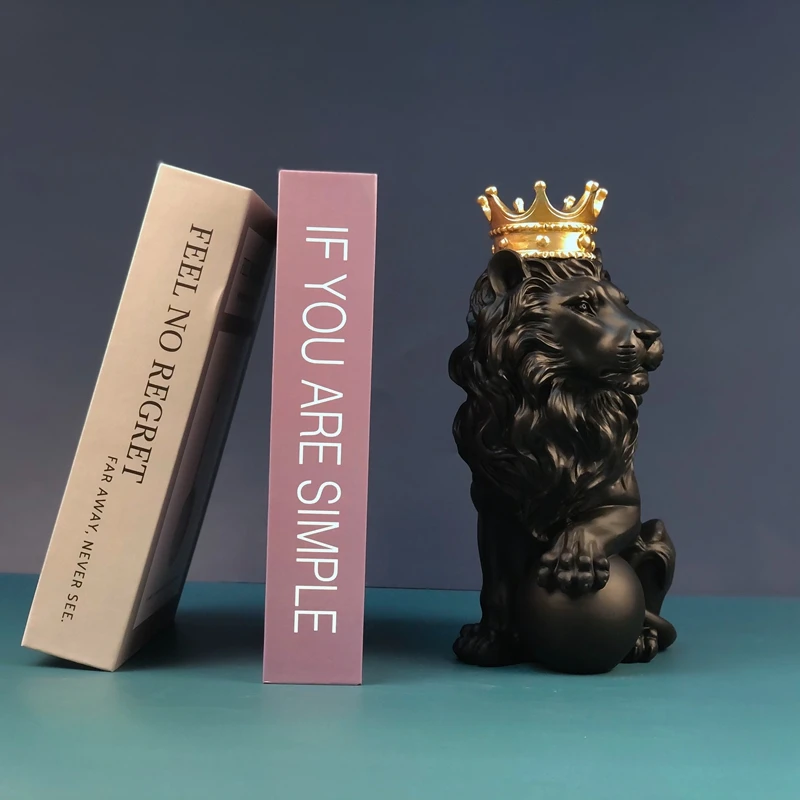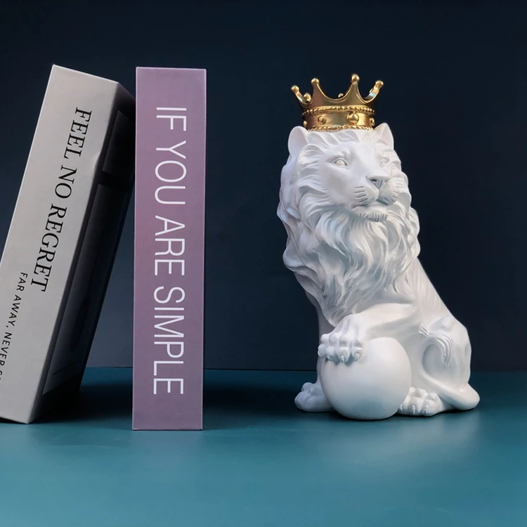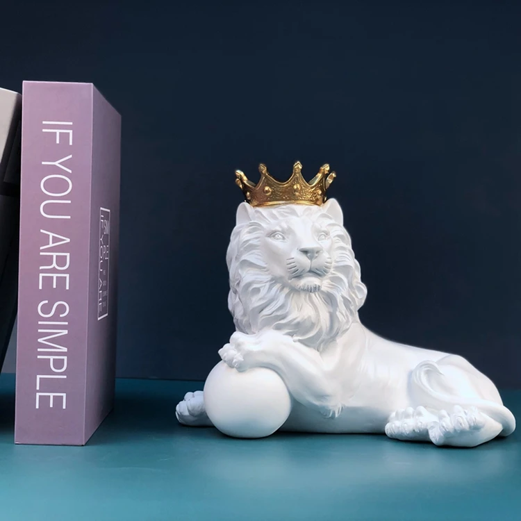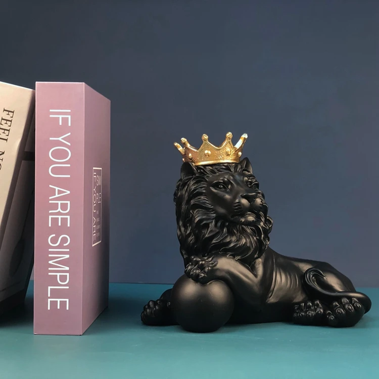 Абстрактная корона лев украшения Скульптура для дома и офиса Мужской Лев шар из смолы статуя для гостиной ТВ бара ремесло Животное Искусство Декор подарок
