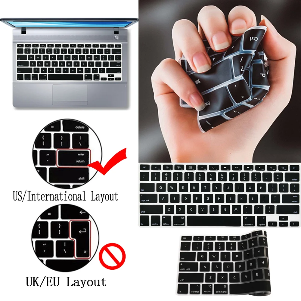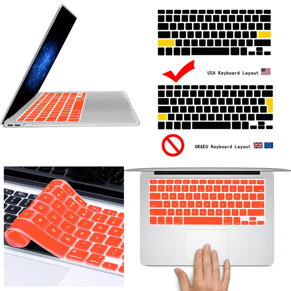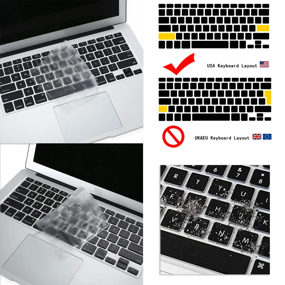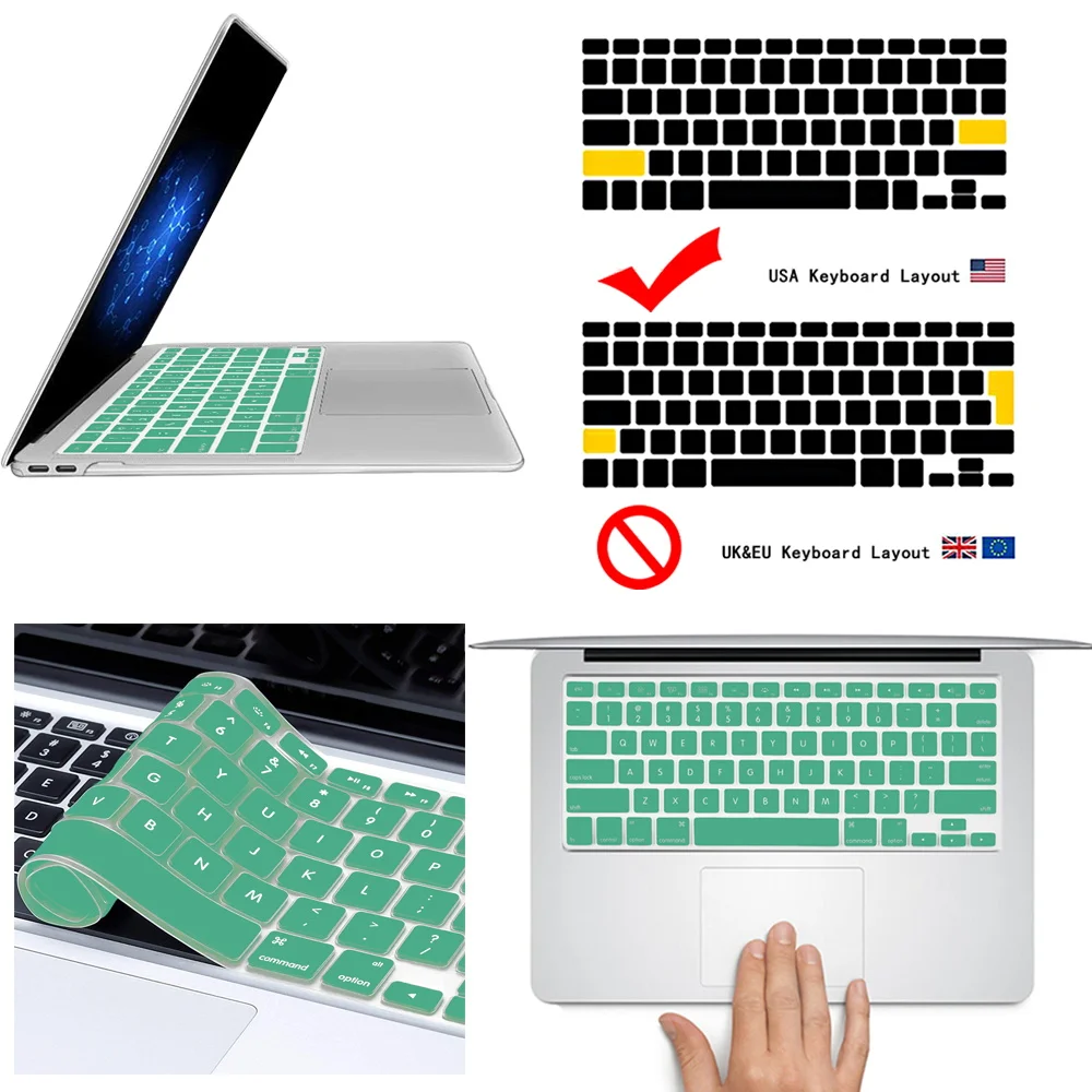 1. [Упаковка]: 1 x Силиконовый чехол для Apple Macbook; 2. [Размер] на 100% абсолютно новый, горячая распродажа; 3. [Цвет]: цвет, как показано; 4. [Материал]: мягкий прочный резиновый силиконовый материал, водонепроницаемый, пыленепроницаемый, полностью защищает клавиатуру ноутбука; 5. [пункт продажи]: гибкий, моющийся, легко наносится и удаляется для очистки или дезинфекции. Очень важно: Пожалуйста, проверьте 2 пункта перед покупкой: 1, пожалуйста, проверьте, что товар подходит вашему ноутбуку перед покупкой, если это не та модель, которая вам нужна, пожалуйста, напишите нам, мы проверим ее для вас. 2. Этот чехол для клавиатуры подходит только для версии США, а не для клавиатуры версии ЕС.Если вам нужна Европейская пленка для клавиатуры, пожалуйста, свяжитесь со службой поддержки клиентов, и Европейская пленка для клавиатуры является прозрачной.