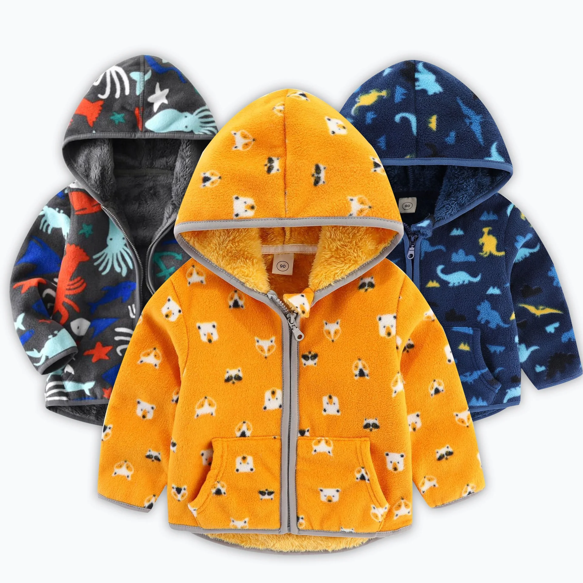 Детское бархатное пальто, осенне-зимняя плюшевая куртка для мальчиков, теплый флисовый пиджак с принтом динозавра для детей, куртки для мальчиков
