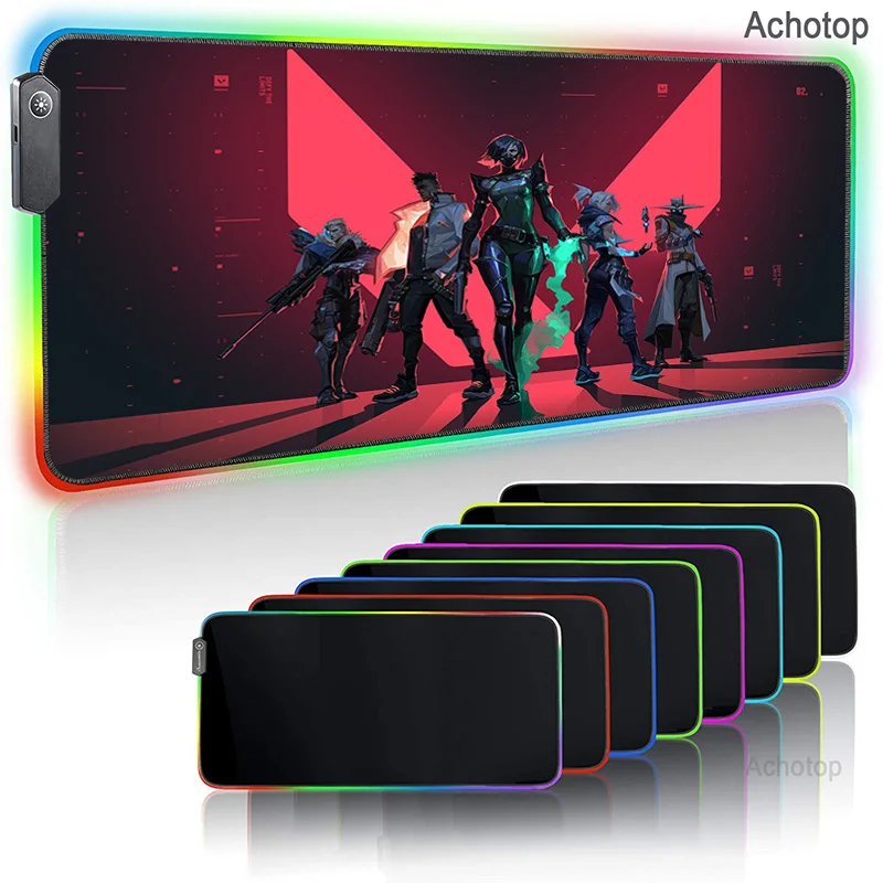Компьютерный светящийся игровой коврик для мыши Valorant RGB, цветной большой светящийся светодиодный Расширенный светящийся клавиатура XXL, Настольный коврик, коврик для мыши
