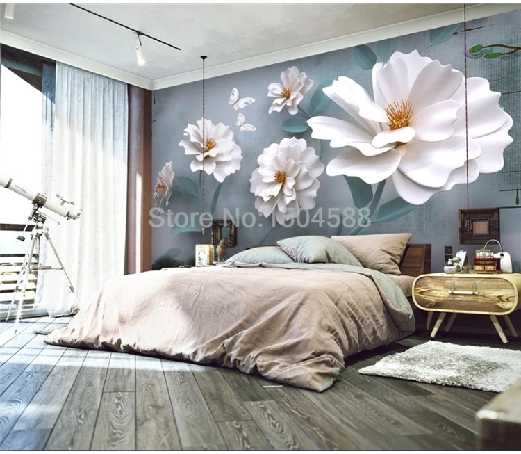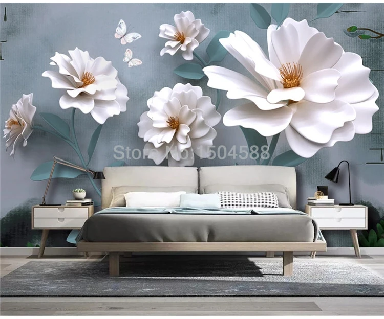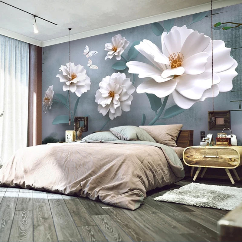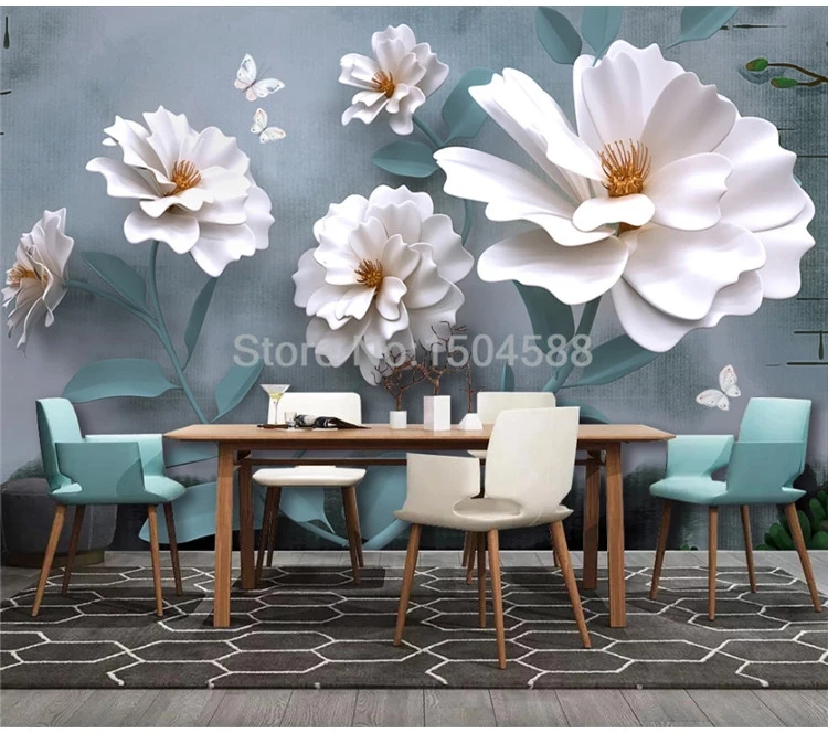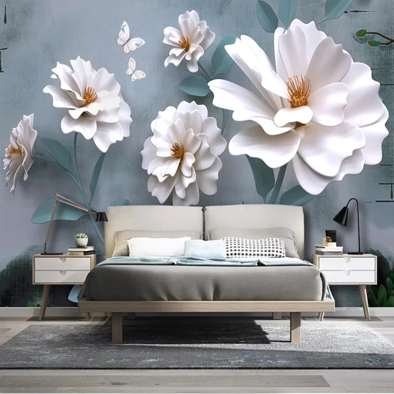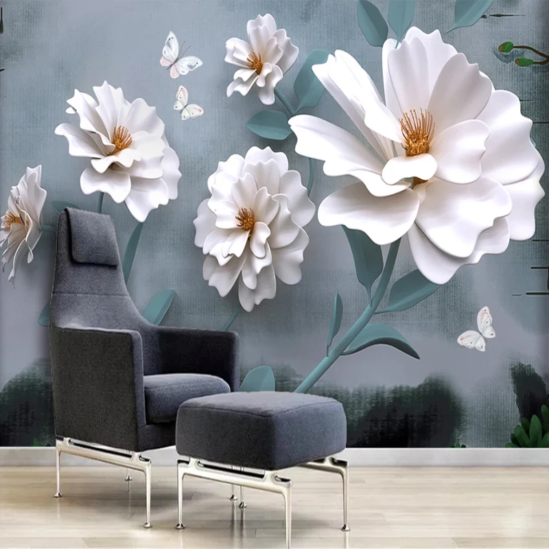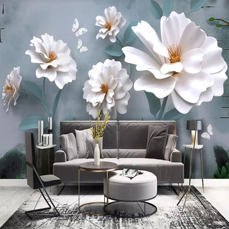 Настенные обои любых размеров на заказ, Современная роспись с белыми лепестками цветов, для гостиной, телевизора, дивана, спальни, домашний декор