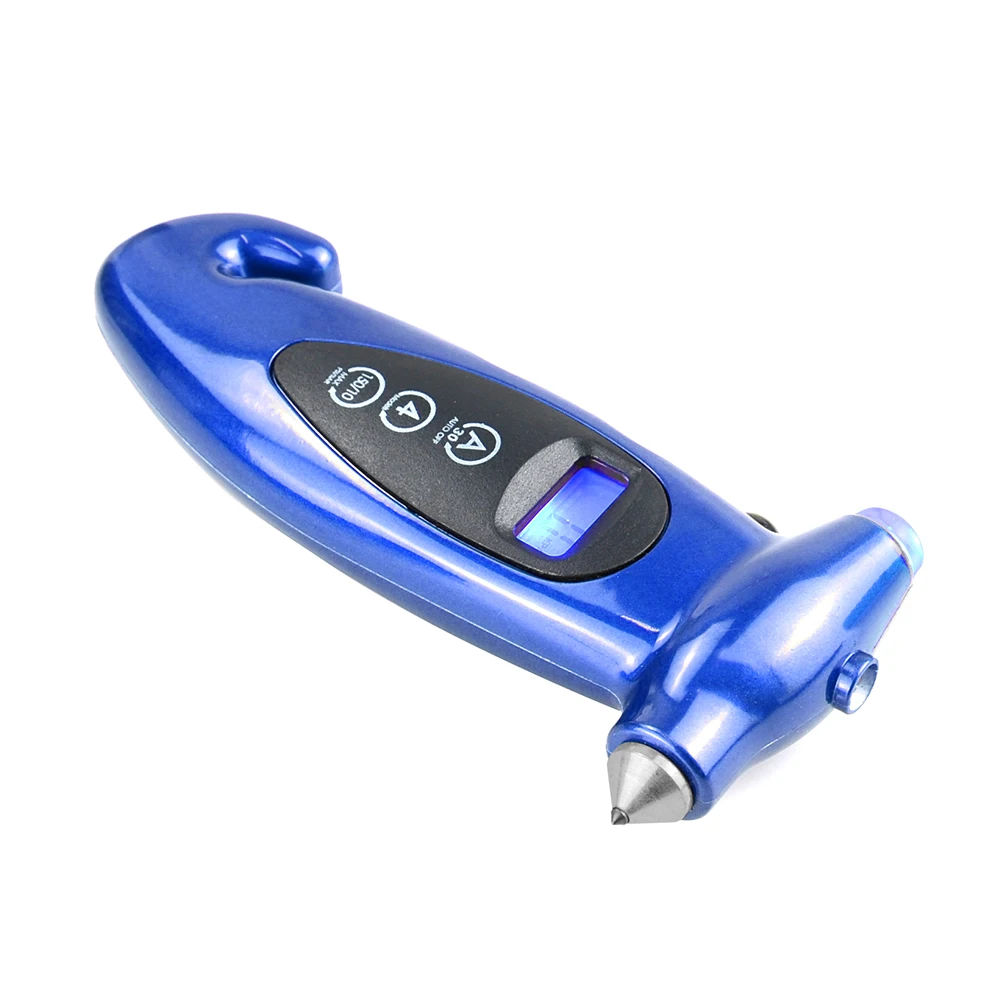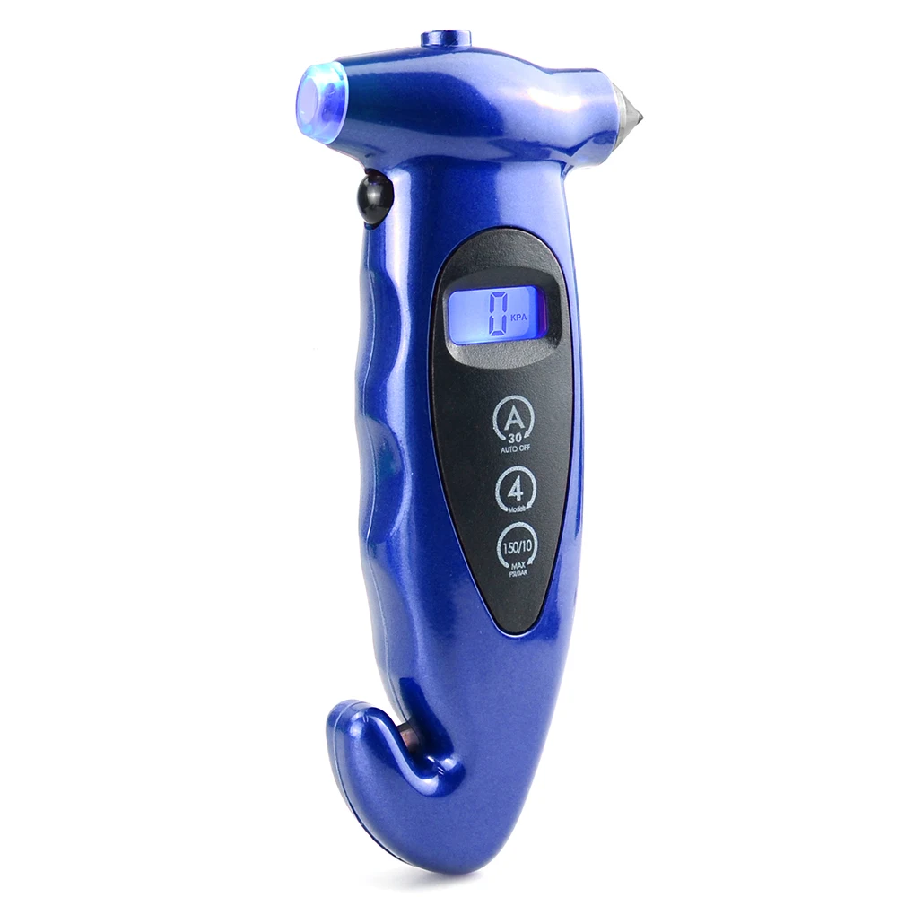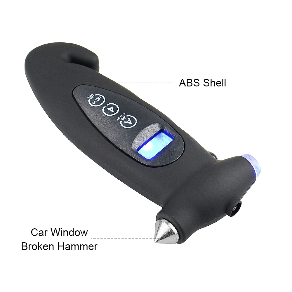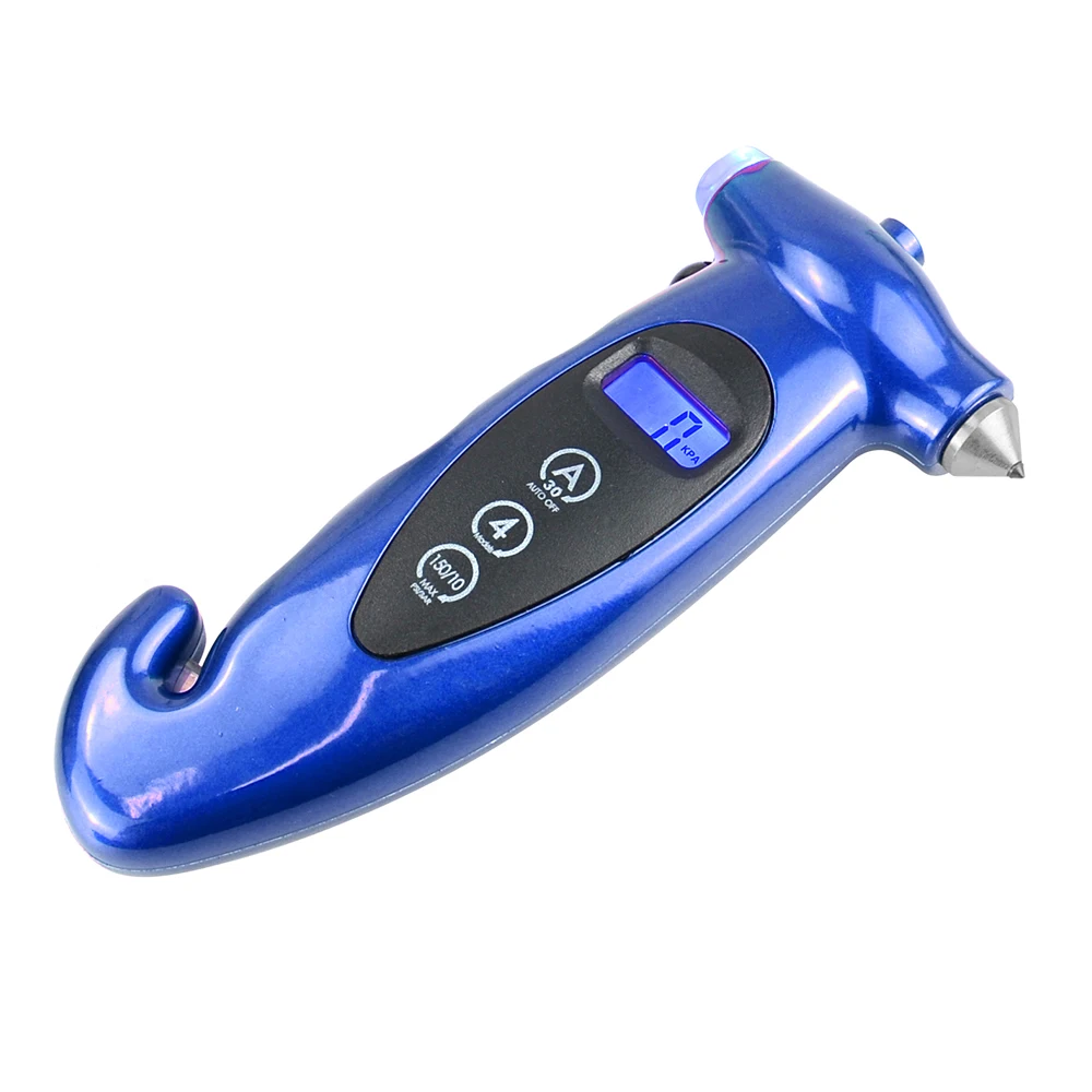 Основная функция:1. Фонарик, аварийное использование;2. Манометр для обеспечения правильного давления в шинах, предотвращения продувки шин и обеспечения безопасности вождения;3. Спасательный молоток, используемый для побега;4. Резак ремня безопасности может быстро отрезать ремень безопасности, что делает безопасность более безопасной.5. Если давление в шинах слишком высокое, сдуйте воздух вовремя, чтобы предотвратить разрыв шин.Диапазон измерения давления: 0-150 фунтов на квадратный дюйм, 0-10 бар, 0-1000 кПа, 0-10 кг/см2Единицы измерения могут быть преобразованы: PSI, BAR, KPA, KG/CM2; Нажмите кнопку питания один раз, чтобы преобразовать устройство. Повторное измерение без сброса. Встроенная 3 AG13 кнопочная электроника, которая используется для 2 лет, и электроника может быть заменена удалением задней крышки. Есть Сертификация CE и сертификация батареи MSDS.Минимальная единица: 0.5PSI/0.05BARТочность: ≤ +/-1,5 psiМощность питания: AG13 * 3, на одной пуговице, электроника 1,5 VКнопка Вкл/Выкл 30 секунд автоматическое Длительное нажатие на 5 секунд ручное выключениеОбычно существует четыре единицы измерения давления воздуха: psi, bar, kPa, kg/ c㎡. Конверсионные отношения между ними:1 бар = 0,069 бар = 6,9 кПа = 0.07c ㎡1 бар = 14,5 фунтов/кв. дюйм = 100 кПа = 1,02 кг/c1 кПа = 0.145psi = 0.01bar = 0,01 кг/c㎡1 кг/c㎡ = 14.22psi = 0.98bar = 98.07kPaБыстрая информацияФункция: Мониторинг давления в шинахЦвет: черный, красный, синий, серебристыйМатериал: ABS корпус стальной молоток и ножДисплей: ЖК-дисплейДиапазон давления: 1-10Bar/0-150PSIРабочая температура: 0-40 ℃Вес: 0,1 кг