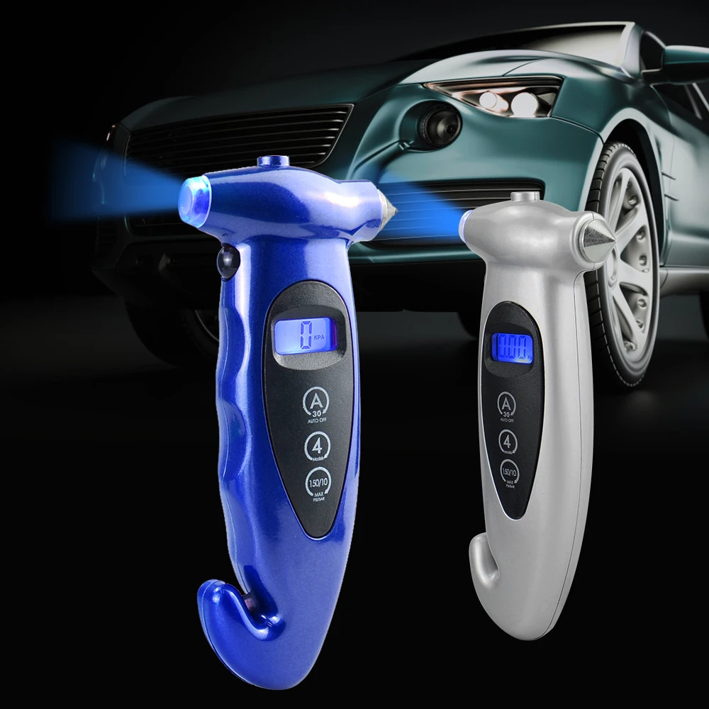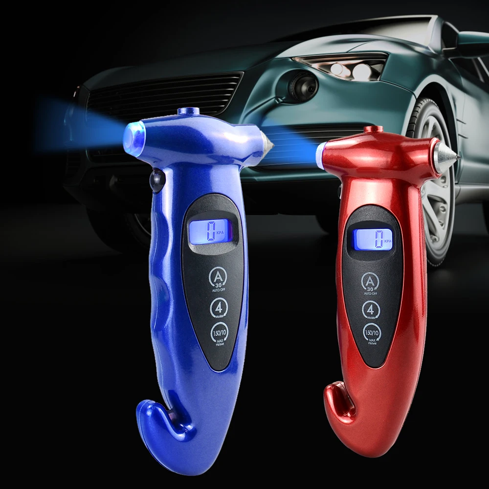 5-в-1 шин Давление датчик Подсветка Высокоточный цифровой Мониторинг шины для легковых автомобилей Воздушный Давление измерителем влажности и температуры ЖК-дисплей Дисплей с разбитое окно молоток