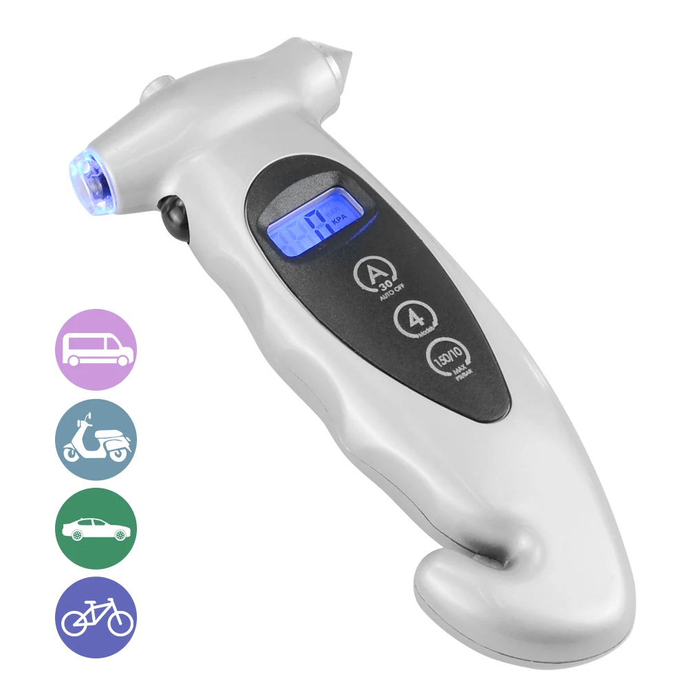 Цифровой измеритель давления в шинах 5 в 1, инструмент для диагностики шин велосипеда, велосипеда, автомобиля, светодиодный измеритель давления воздуха 0-150 PSI, тестер