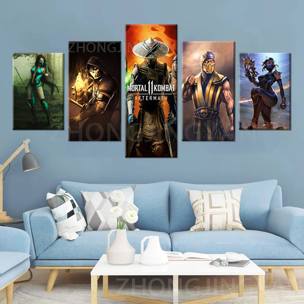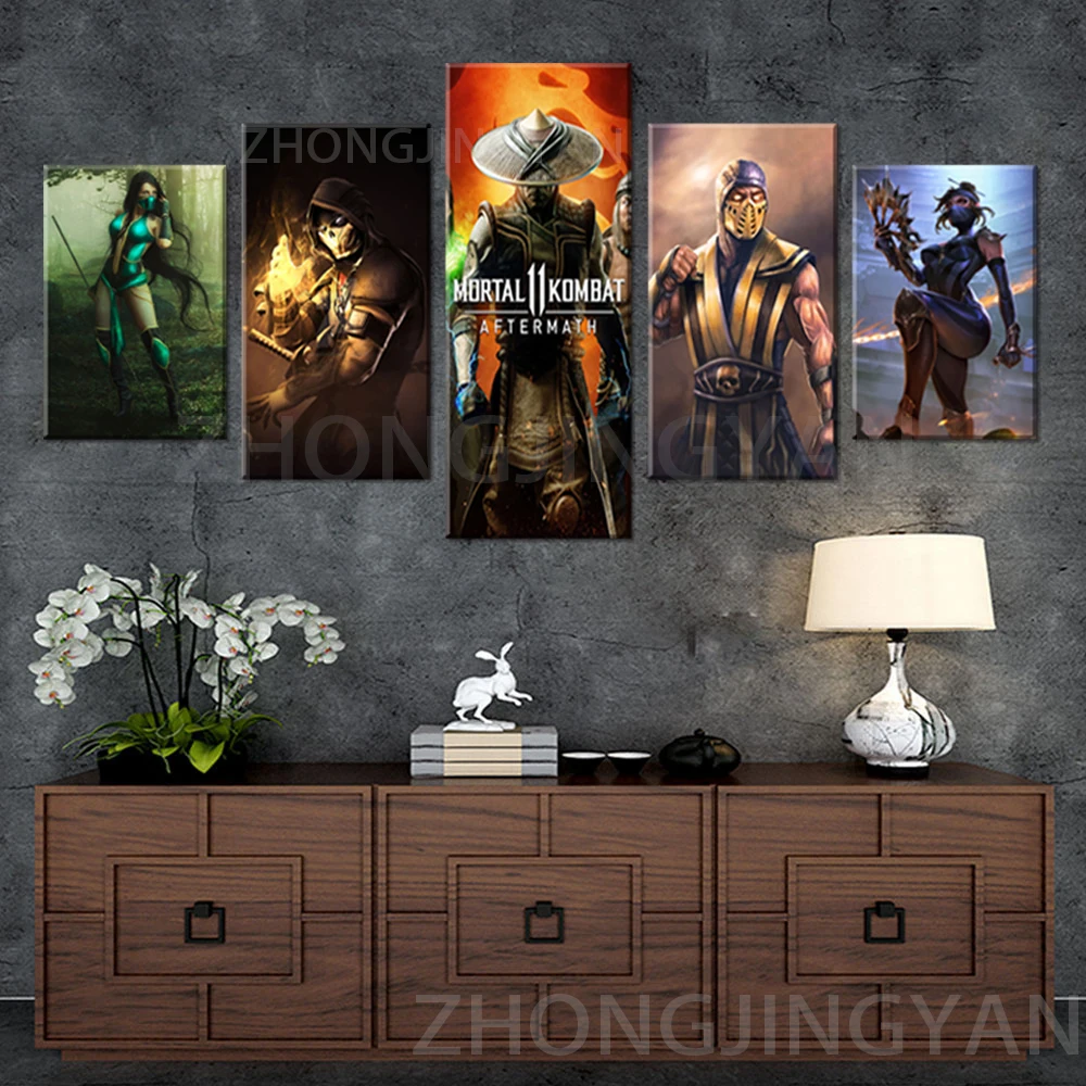 5 панелей, игровой постер, украшение Mortal Kombat, Картина на холсте HD, Картина на холсте Mortal Kombat, постер, настенное искусство C