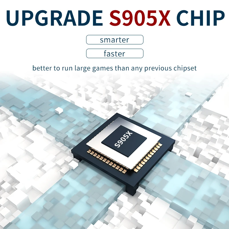 Оснащен усовершенствованной S905X чип, этот чип мощнее чем RK3326, с 64-битной 4-х ядерный Процессор, 5 Mali-450 графического процессора, И поддерживает жесткое декодирование видео 4K @ 60fps и обработку HDR. S905X поддерживает декодирование Google VP9 4K и поддерживает более крупные блоки кодирования и больше Цветовых Пространств.