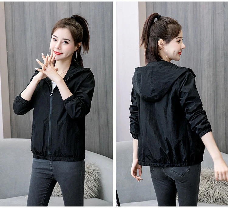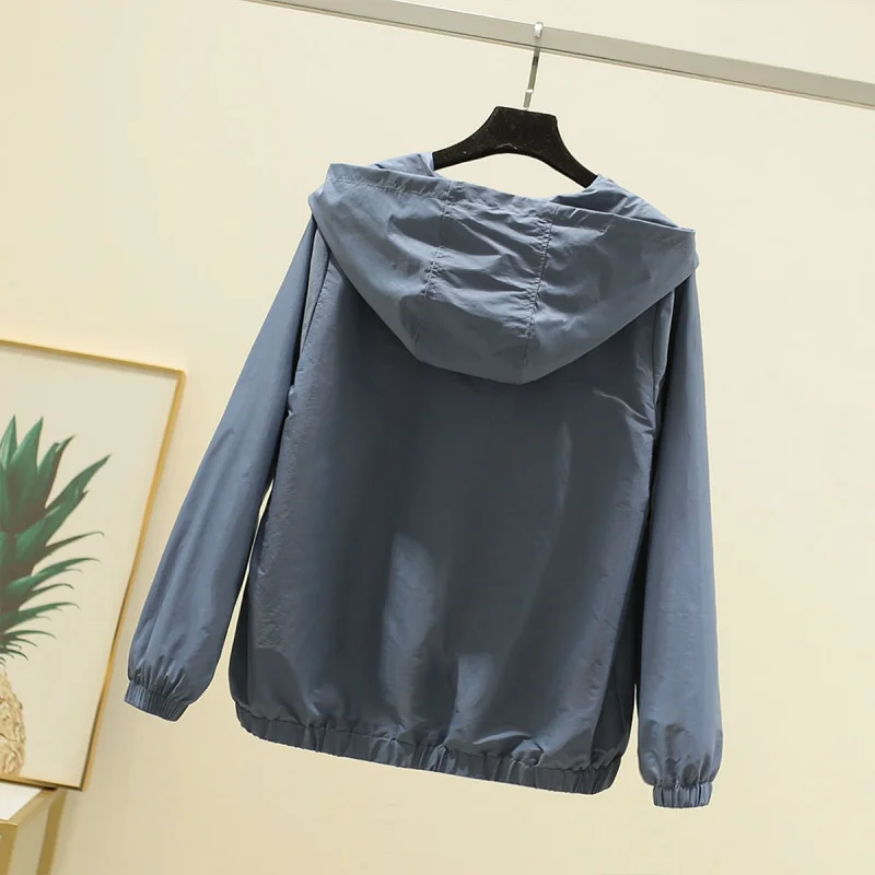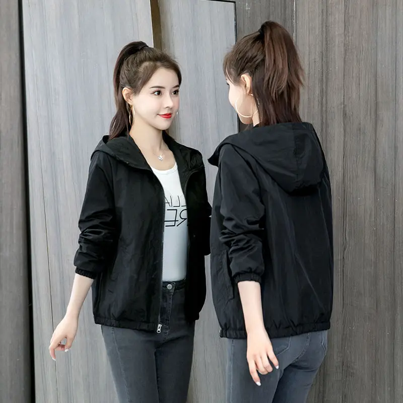 2021 весенние куртки, Женская Базовая куртка с капюшоном на молнии, Повседневная однотонная ветровка, легкая женская куртка с капюшоном, пальто Veste Femme
