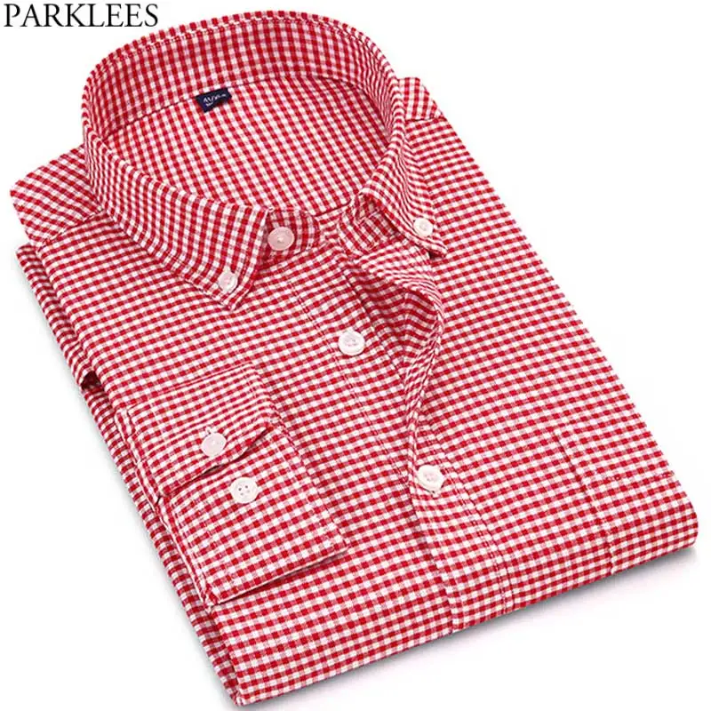 Классическая красная клетчатая оксфордская рубашка для мужчин 2021 Весенняя новая приталенная клетчатая рубашка с длинным рукавом мужская хлопковая Повседневная рубашка на пуговицах 4XL