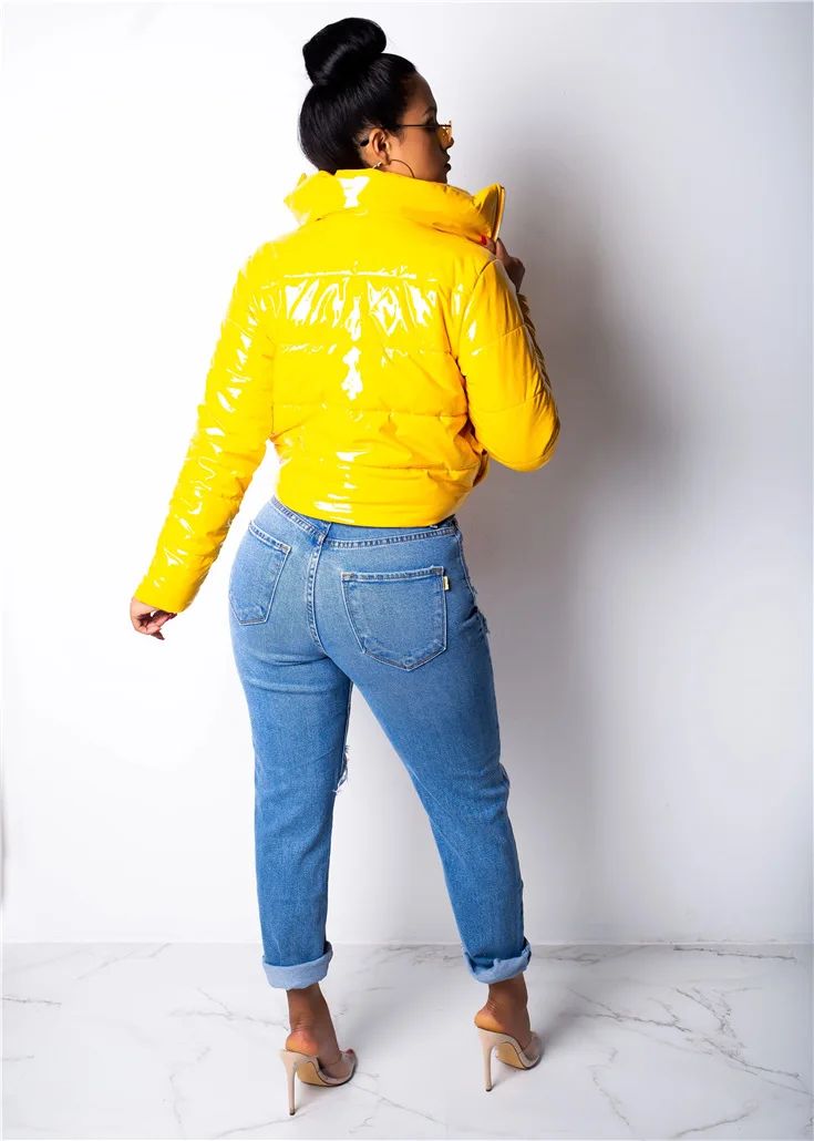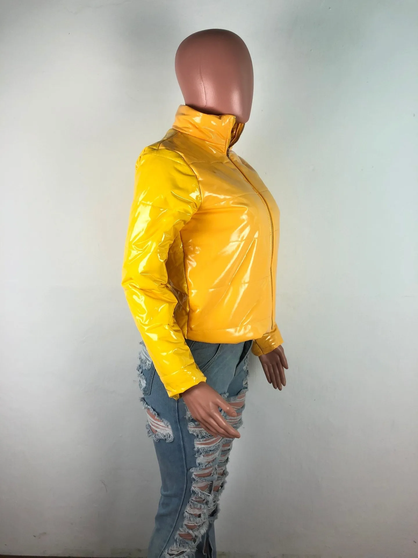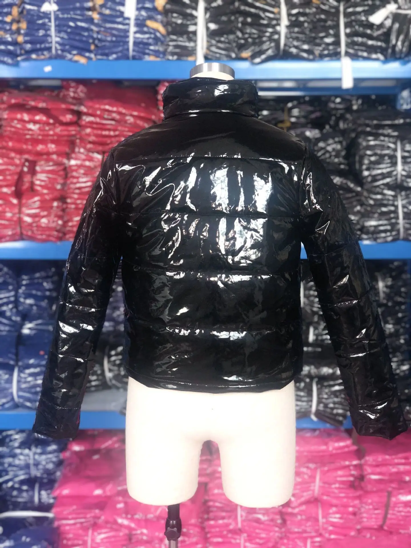 Женские повседневные короткие пальто из лакированной кожи PU, зимни...