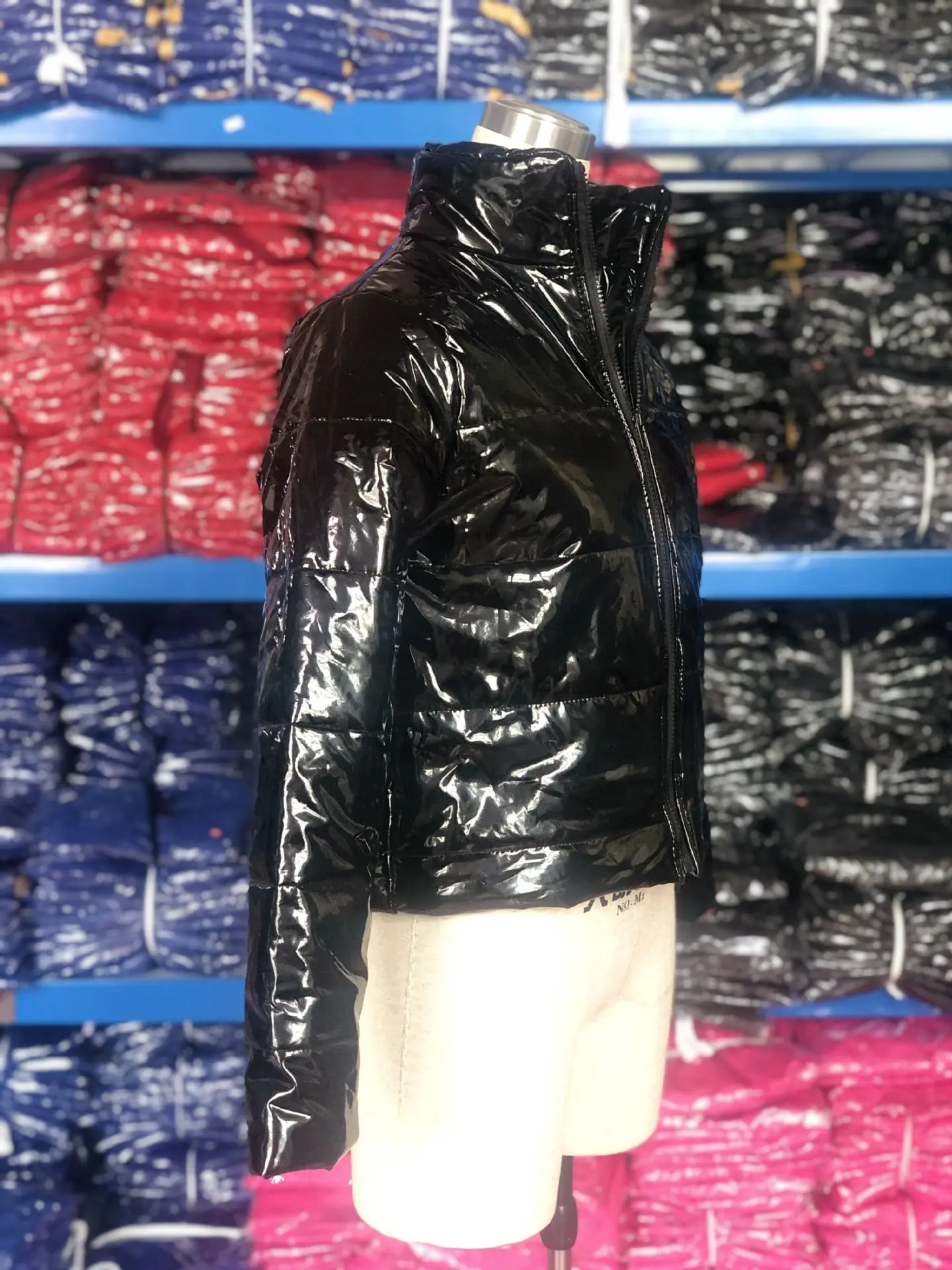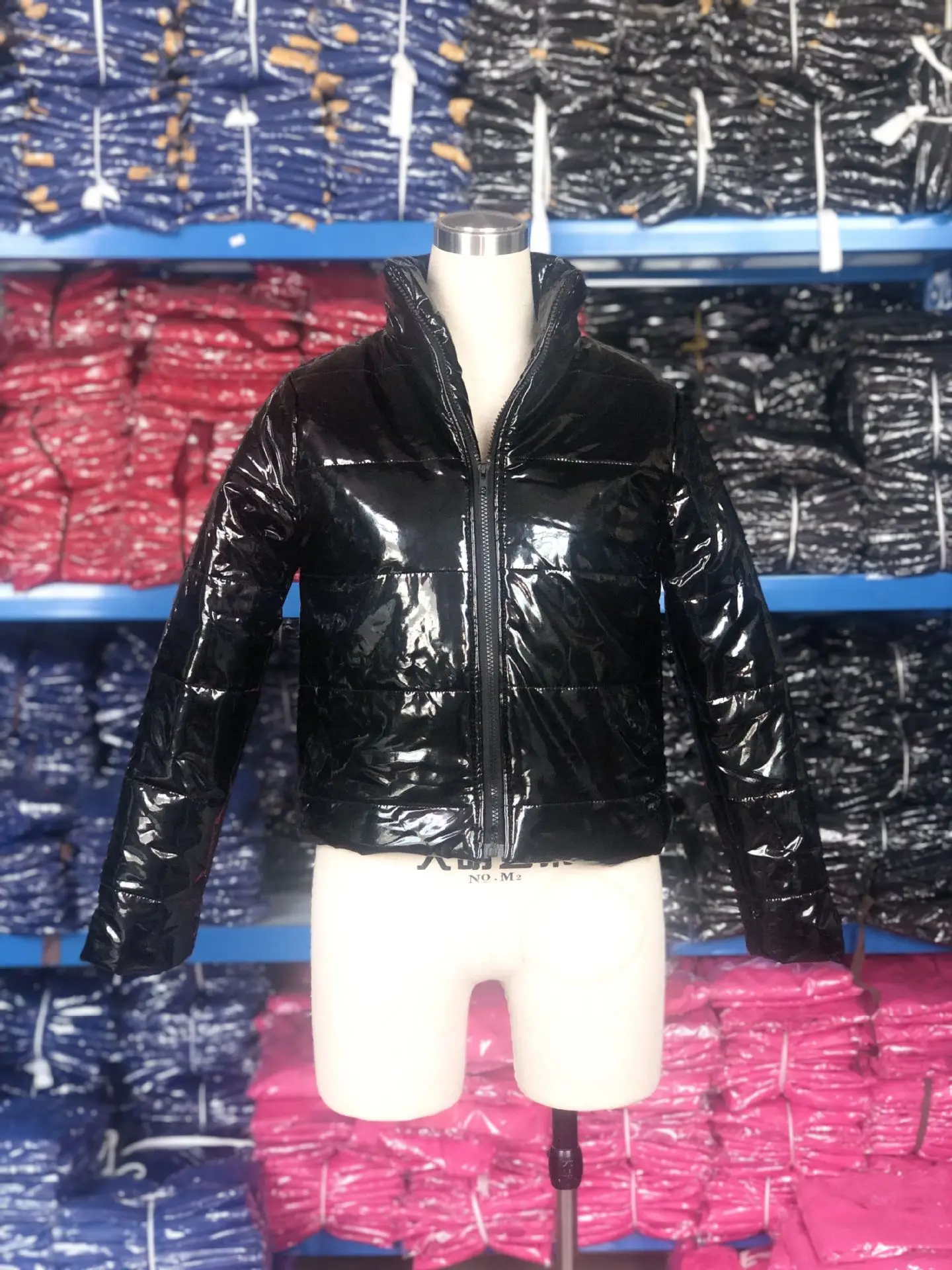Женские модные глянцевые короткие зимние пальто из искусственной ко...